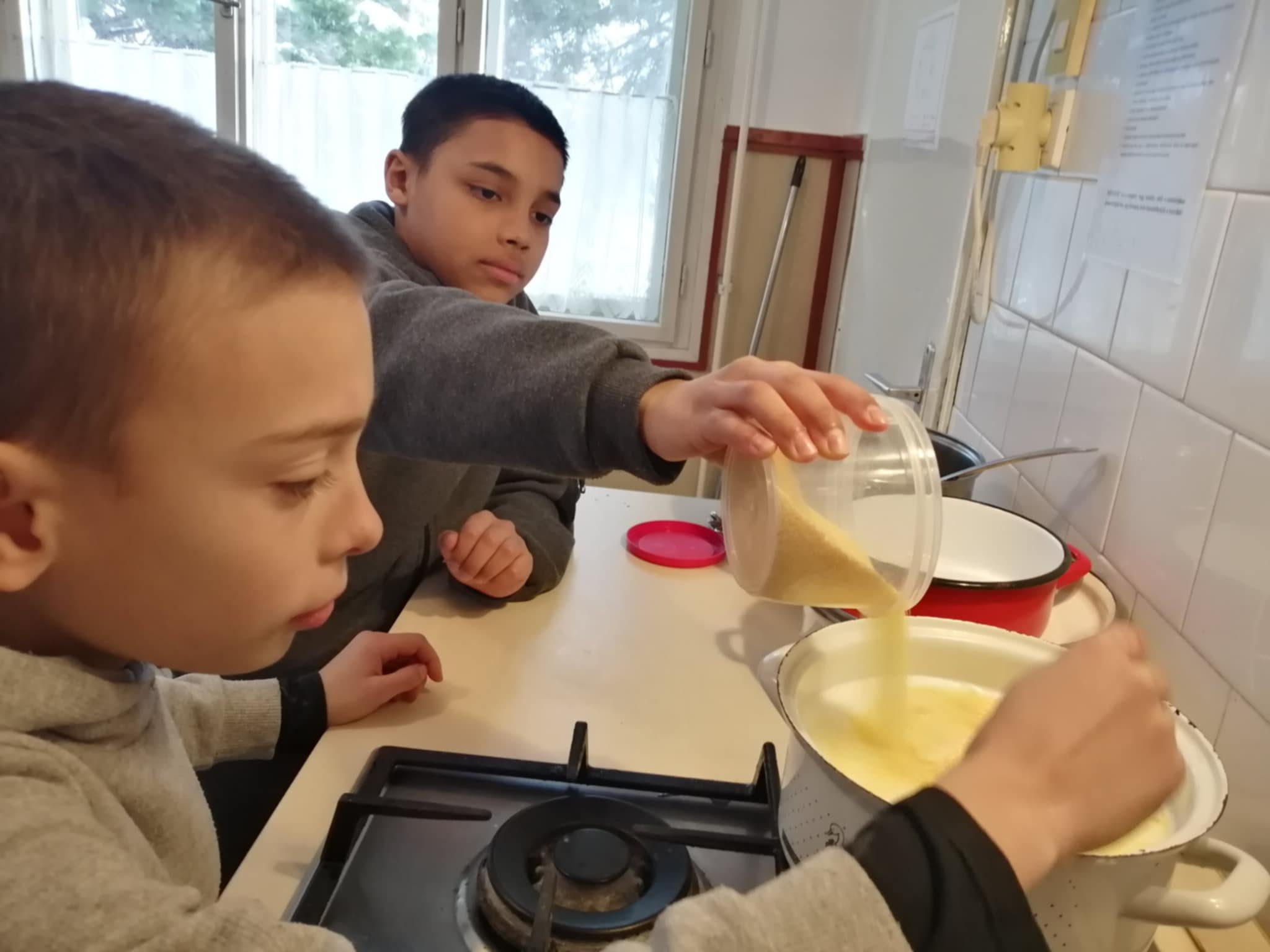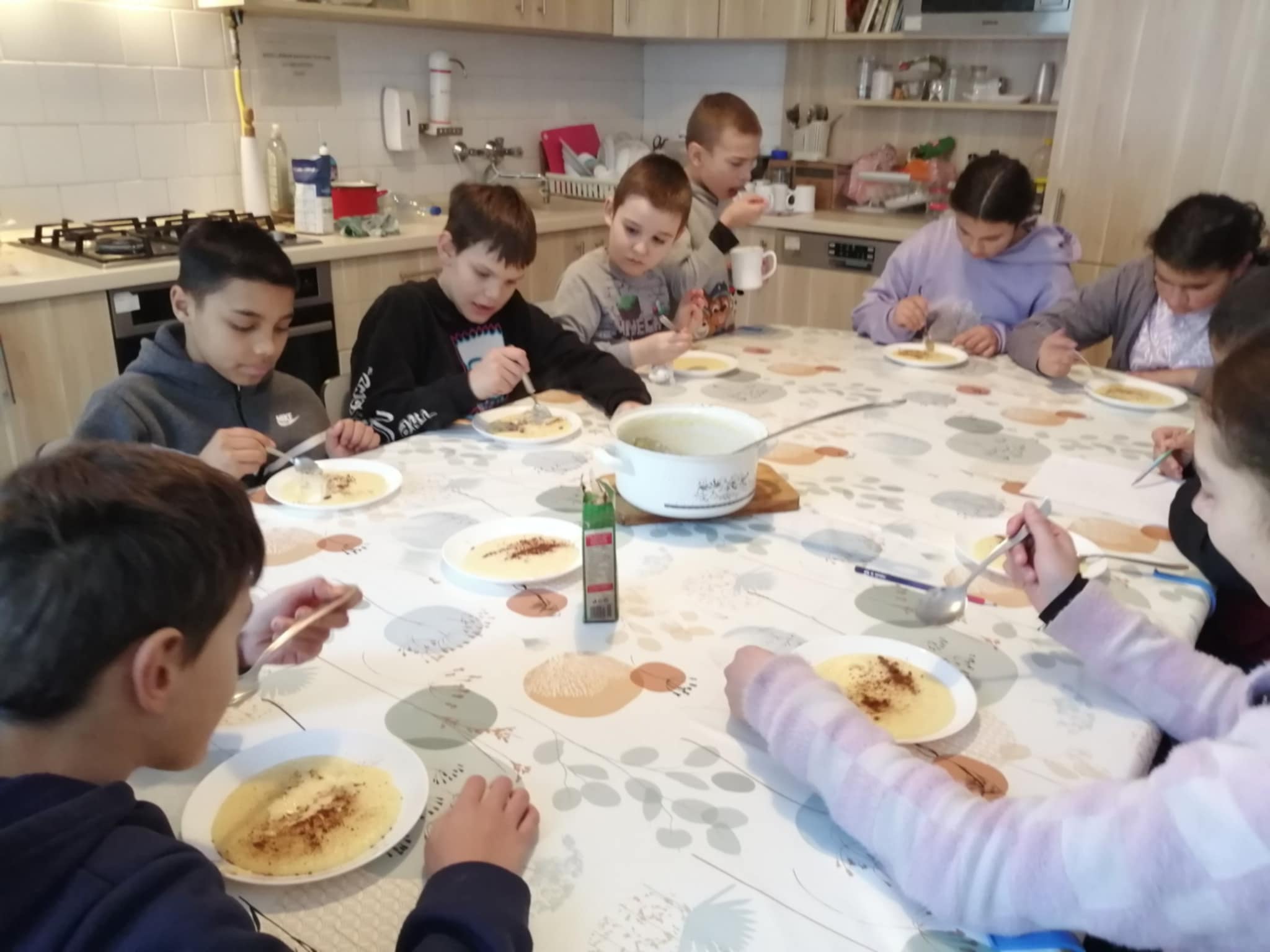 A megbeszélés után, a rövid távú célunkat gyorsan meg is valósítottuk, hiszen a januári nagy havazásban, bizony mindenkinek jól esett a finom, meleg, illatos köleskása. A gyerekek lelkesen mértek, kevergettek, terítettek, a vidám programon.