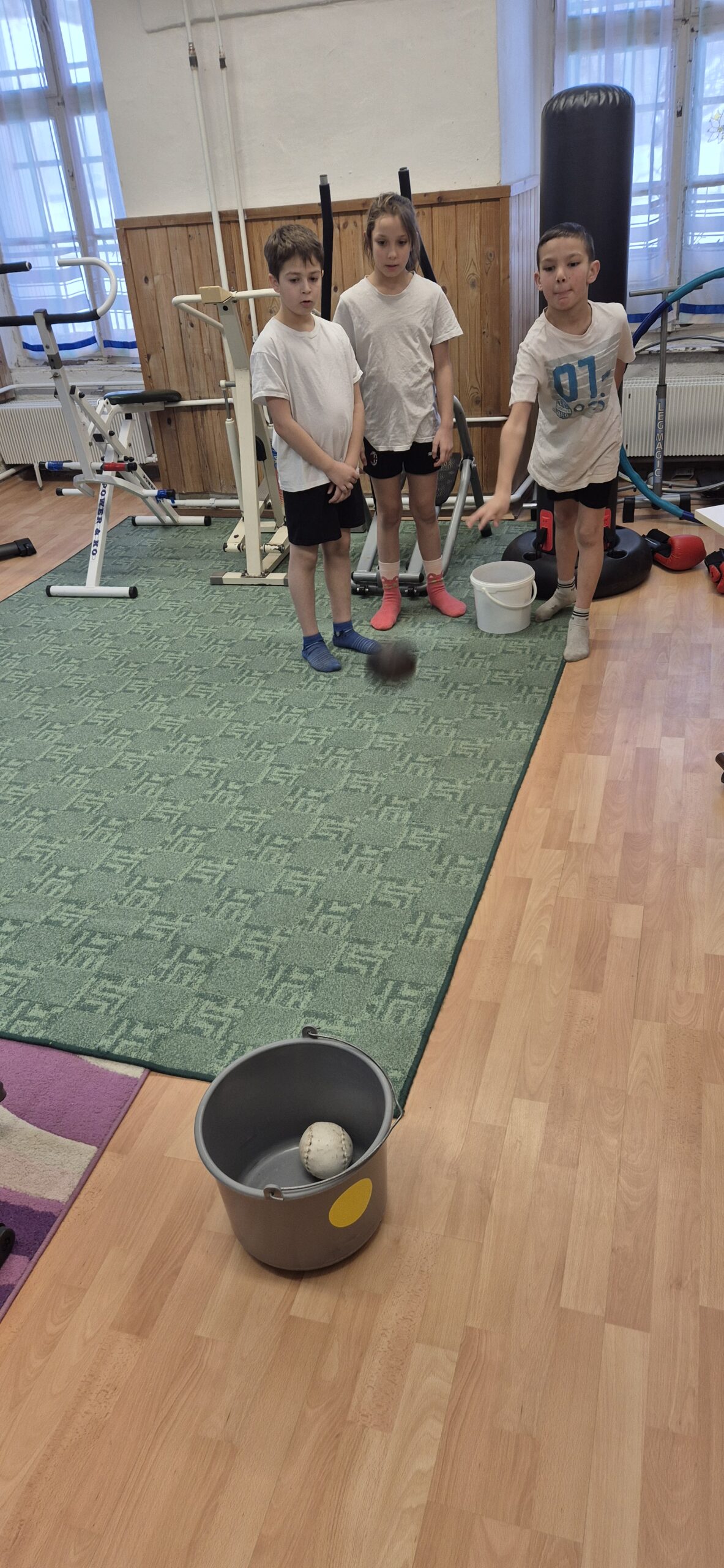Testnevelés órán nagyon élvezték a Kati mondja! nevű játékot, kipróbáltuk a Hegy meditációt és játszottunk célbadobó versenyt is. Itt is megfogalmaztuk célként, hogy minél több kislabdát sikerüljön bedobni a vödörbe. Sokszor gyakoroljuk az agyfélteke összehangoló mozgásokat is, amik segítenek a gyerekeknek a tanulásban is.