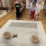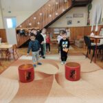 A Napsugár csoportban hasonló játékot játszottak. Annyi különbséggel, hogy babzsákkal kellett célbadobni kosárba.