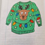 Először megnéztünk egy videót a csúnya karácsonyi pulcsikról, aztán a gyerekek angolul írtak egy-egy történetet, amelyben szerepelnie kellett karácsonyi pulcsinak, egy kisállatnak és egy csodának.