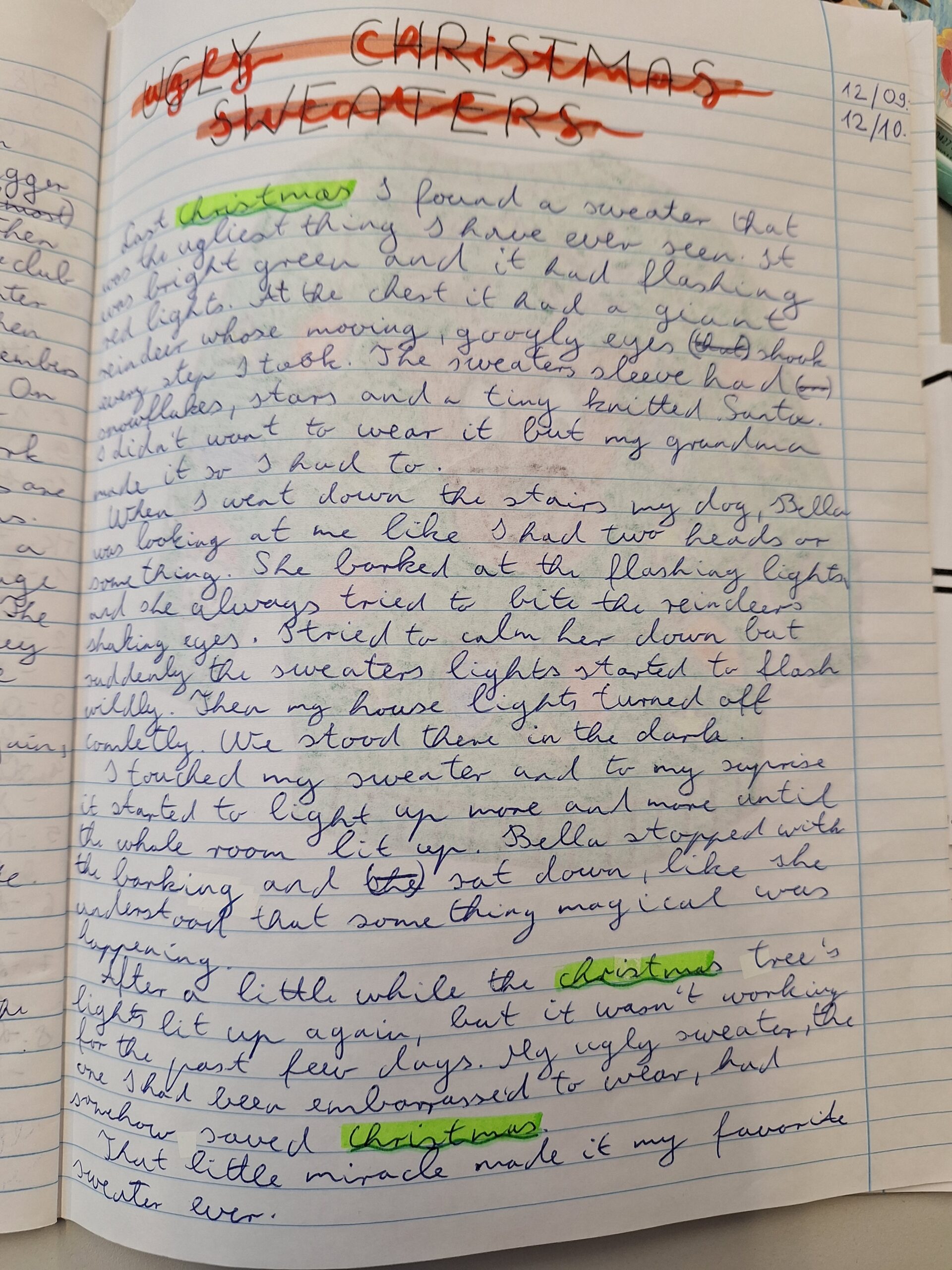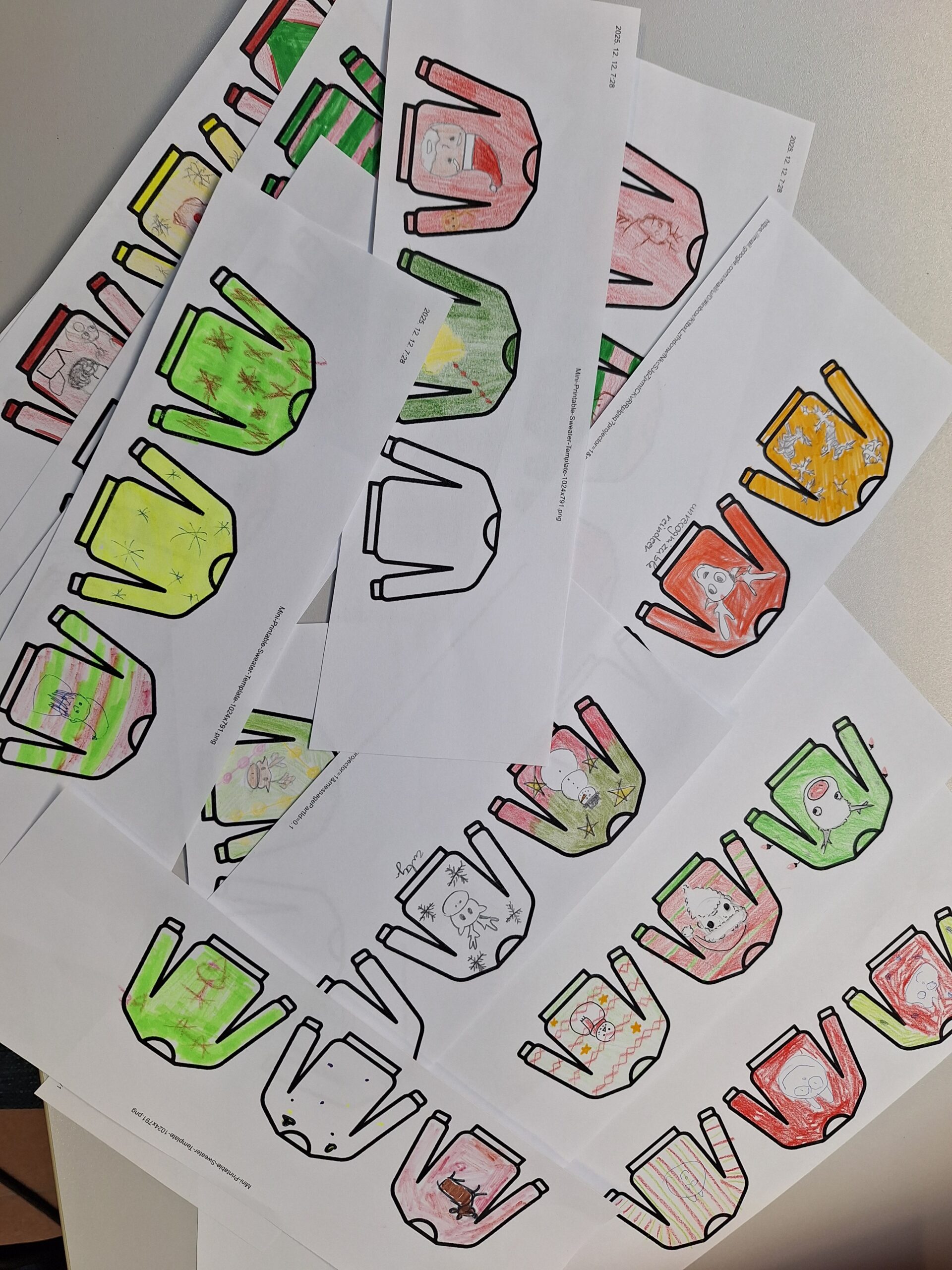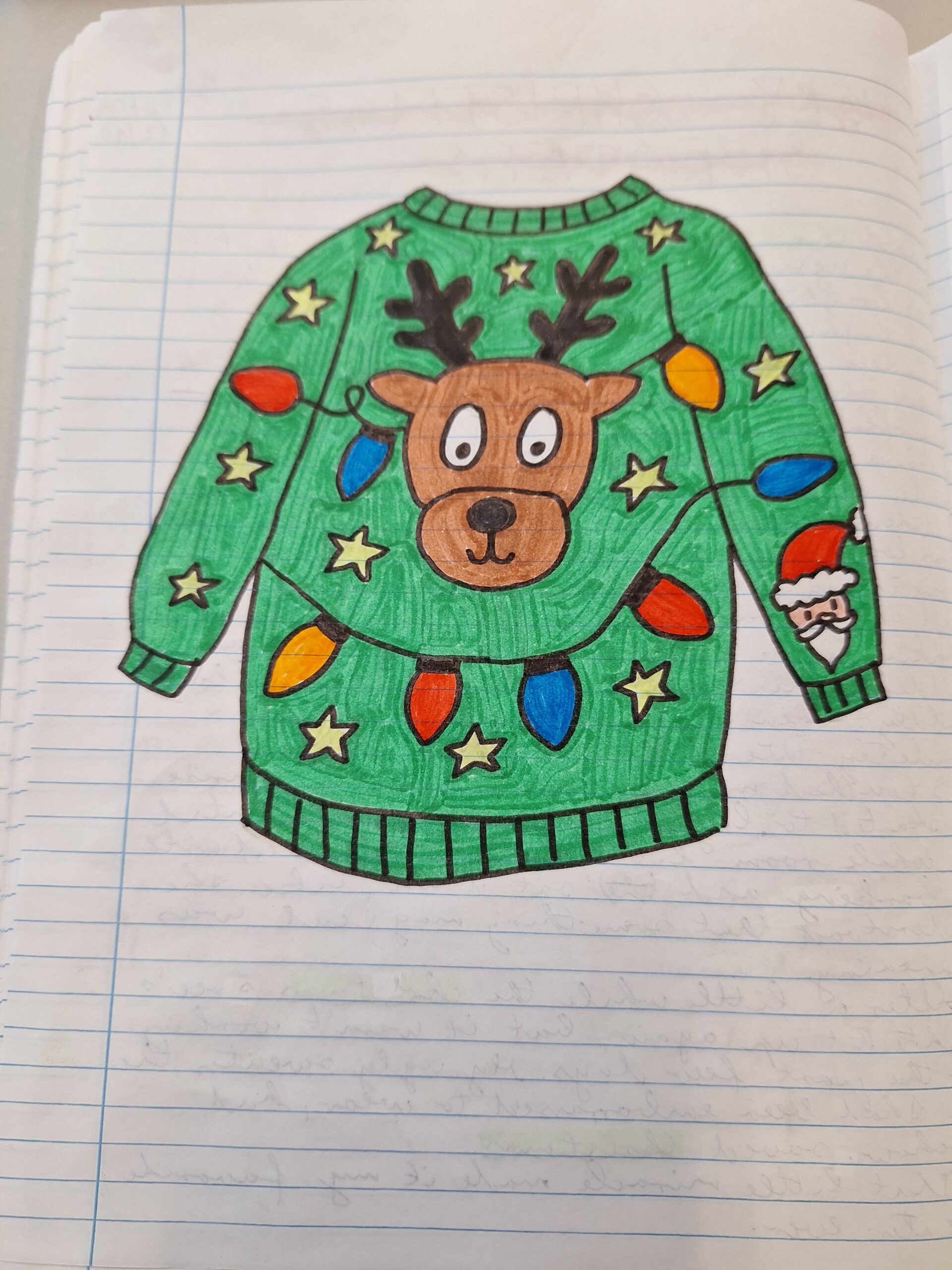 Először megnéztünk egy videót a csúnya karácsonyi pulcsikról, aztán a gyerekek angolul írtak egy-egy történetet, amelyben szerepelnie kellett karácsonyi pulcsinak, egy kisállatnak és egy csodának.