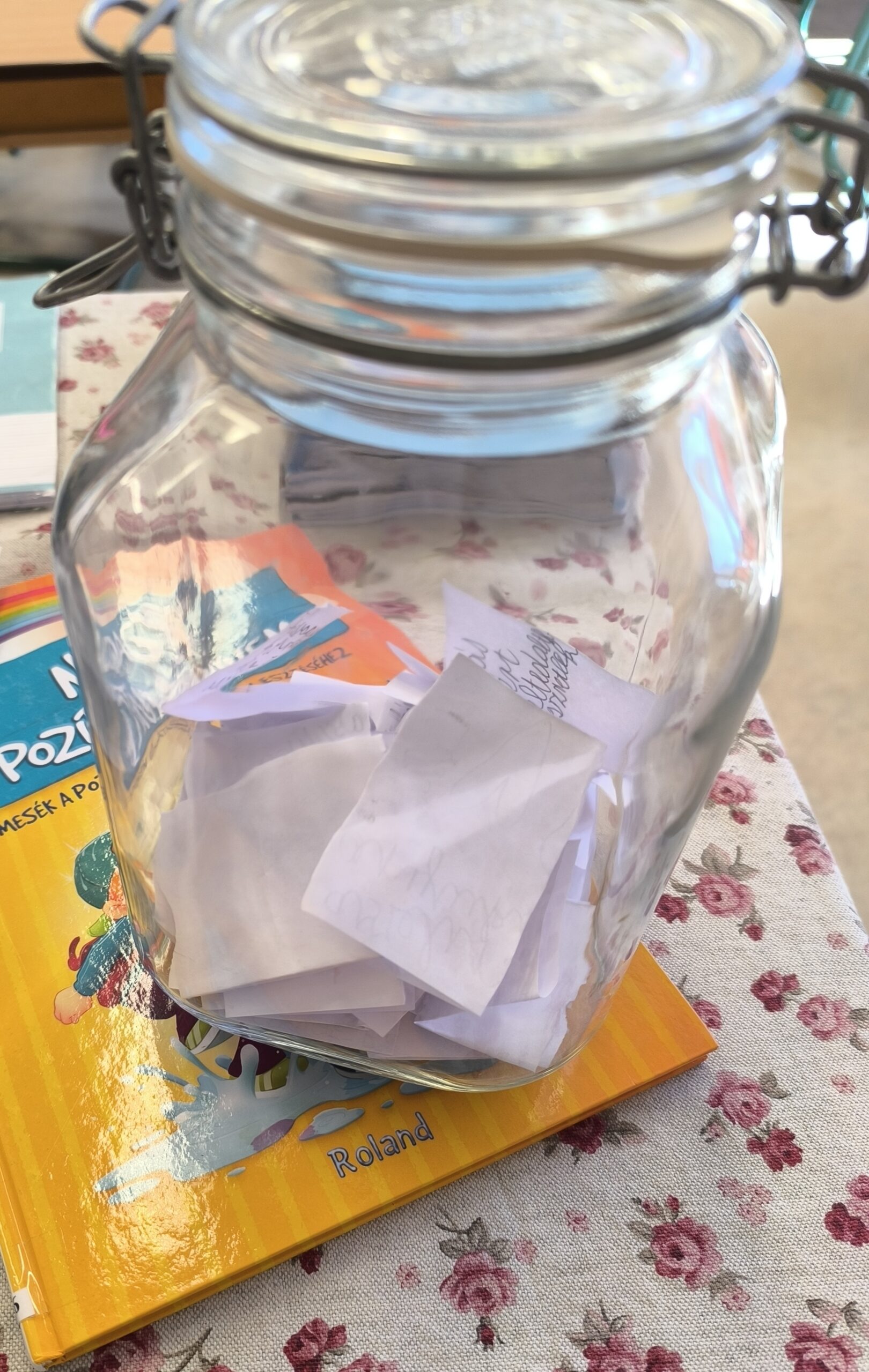 A mai boldogságórán a pozitív gondolkodás, és az önmagunkkal való kapcsolat került a középpontba. Az óra elején egy rövid relaxációval hangolódtunk rá a közös munkára, majd mozgásos játékkal („Almát szedj ügyesen, szőlőt szedj ügyesen..”) aktivizáltam a gyerekeket. Ezt követően a témát bevezettem, beszélgettünk arról, mi tesz minket igazán boldoggá, és milyen apró dolgokért lehetünk hálásak a mindennapokban. A tanulók nagyon szép gondolatokat fogalmaztak meg, például: hálásak az anyukájukért, az ételért, a szeretetért, a tanulás lehetőségéért és Istenért. Szó volt arról is milyenek a hálás emberek és hogyan viselkednek. Beszéltünk arról hogyan tudjuk észrevenni a jót, még a nehéz helyzetekben is. A téma feldolgozásához egy mesét olvastam fel „A csodakantár” címmel, majd közösen kigyűjtöttük belőle a hálás szereplőket. Megbeszéltük hogyan kapcsolódik össze a hála érzése a boldogsággal. Készült feladatlap is amely segített az élmények elmélyítésében. Ezután a gyerekekkel „hálabefőttet” készítettünk, melybe egymásnak írták le miért hálásak a másiknak. Az órát közös énekléssel zártuk „Szép nap, ölelj most át engem” című dallal.