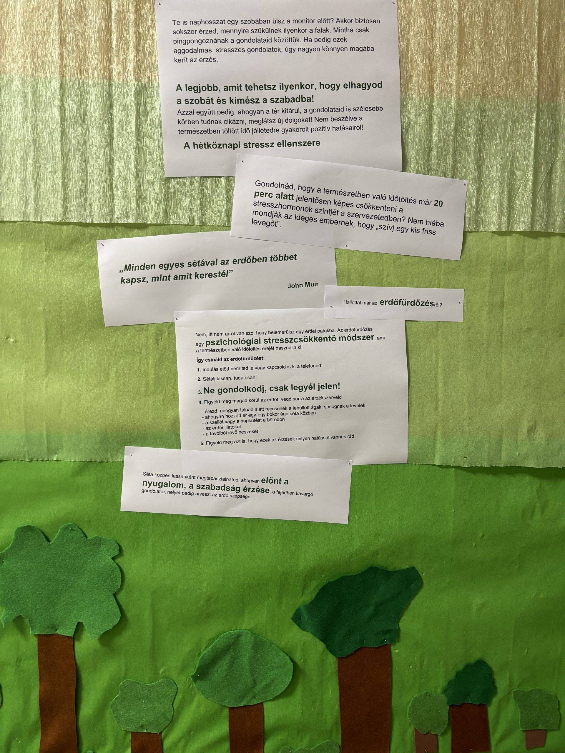 Az iskolai faliújságon erdőfürdőzésre invitáltuk az iskola apraja-nagyját.