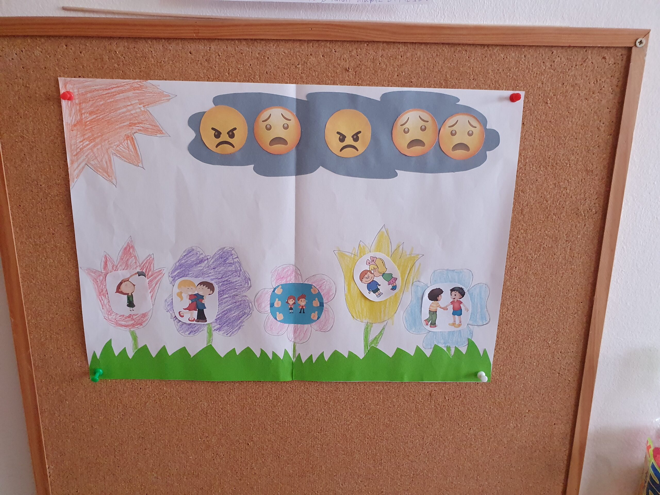 Ezt követően elkészítettünk egy közös képet, melyen a haragot és a szomorúságot tartalmazó, jelképező felhő elvonul, és a megbocsátás kifejezési formáival megjelenő virágok pedig színesen virítanak.