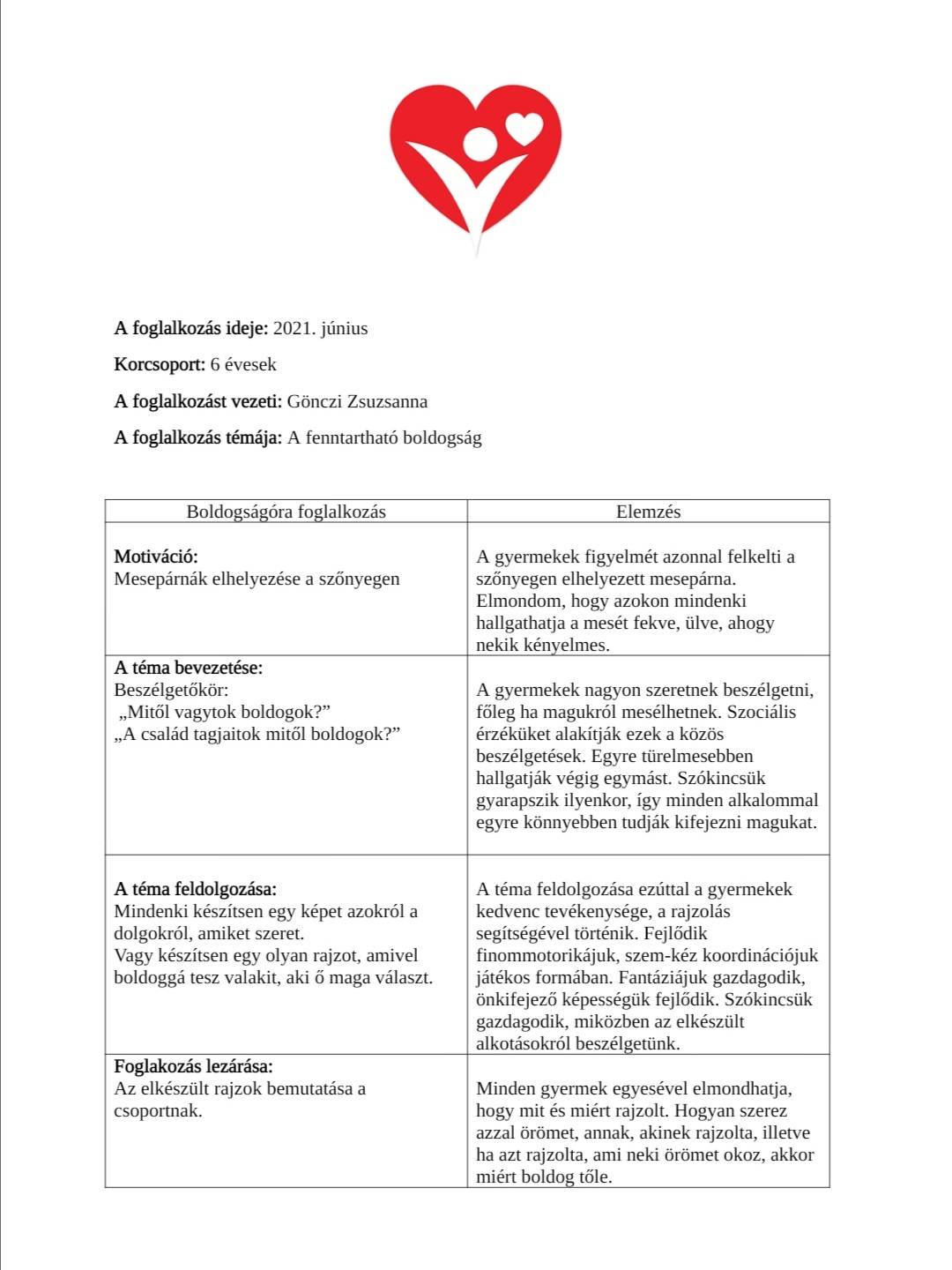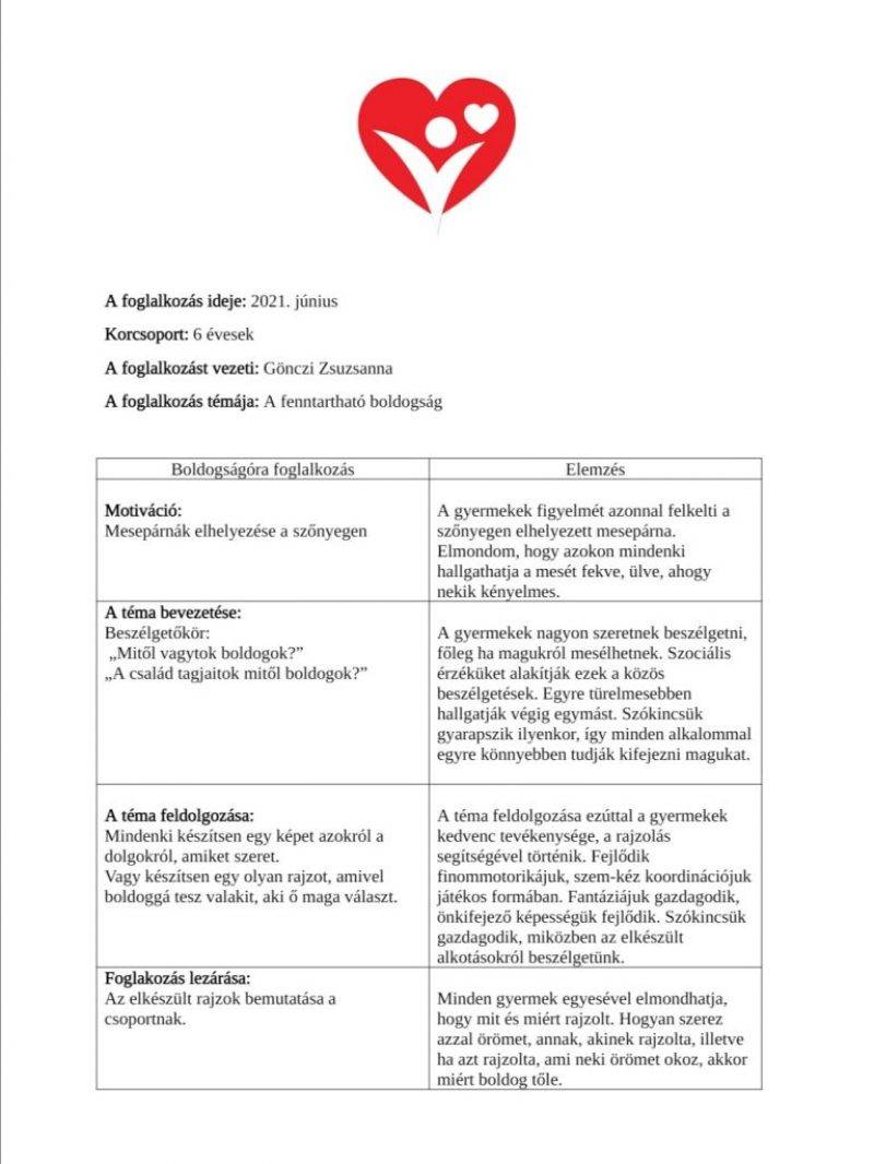 A gyermekekben a boldogság fogalmának erősítése.