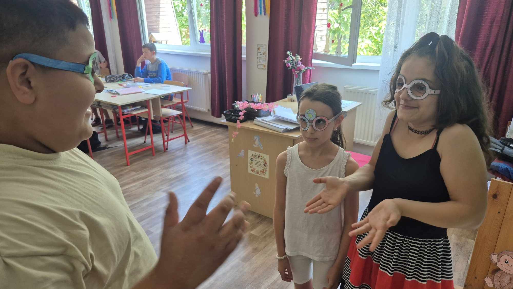 A mellékelt szemüveget készítettük el a tanulókkal, melyet miután kiszíneztek és kivágtak egy kis párbeszéd keretein belül beleképzelték magukat a Föld helyzetébe és elmondták érzéseiket.
