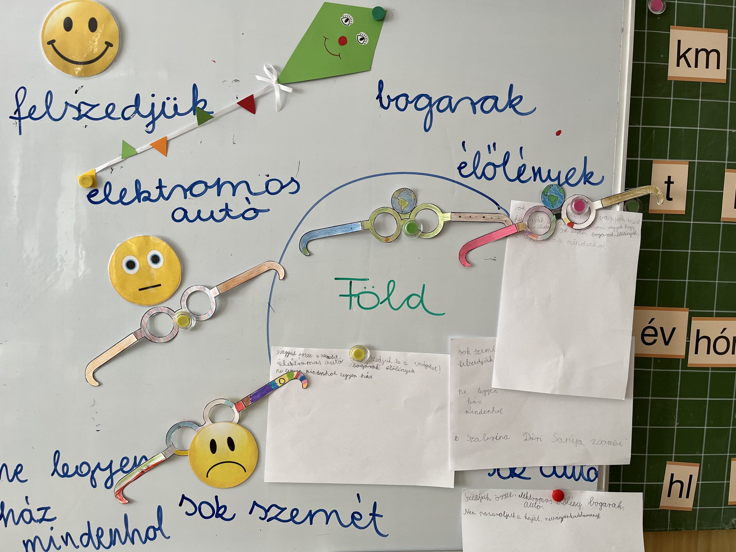 Csoportban a gyerekek elkészítették a Föld, illetve az emberiség szemüvegét.