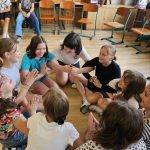 Az órán a tanulók székeit körben rendeztük el. A foglalkozás kezdetén megkértem őket, hogy bejelentkezésként egy mozdulattal mutassák meg a többieknek, milyen hangulatban érkeztek.