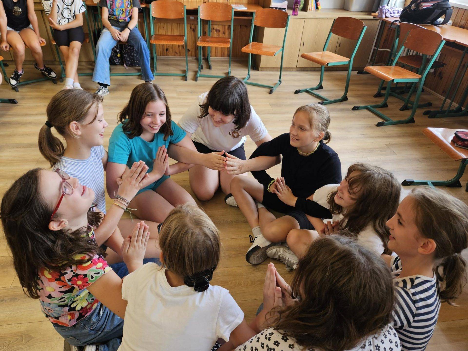 Az órán a tanulók székeit körben rendeztük el. A foglalkozás kezdetén megkértem őket, hogy bejelentkezésként egy mozdulattal mutassák meg a többieknek, milyen hangulatban érkeztek.
