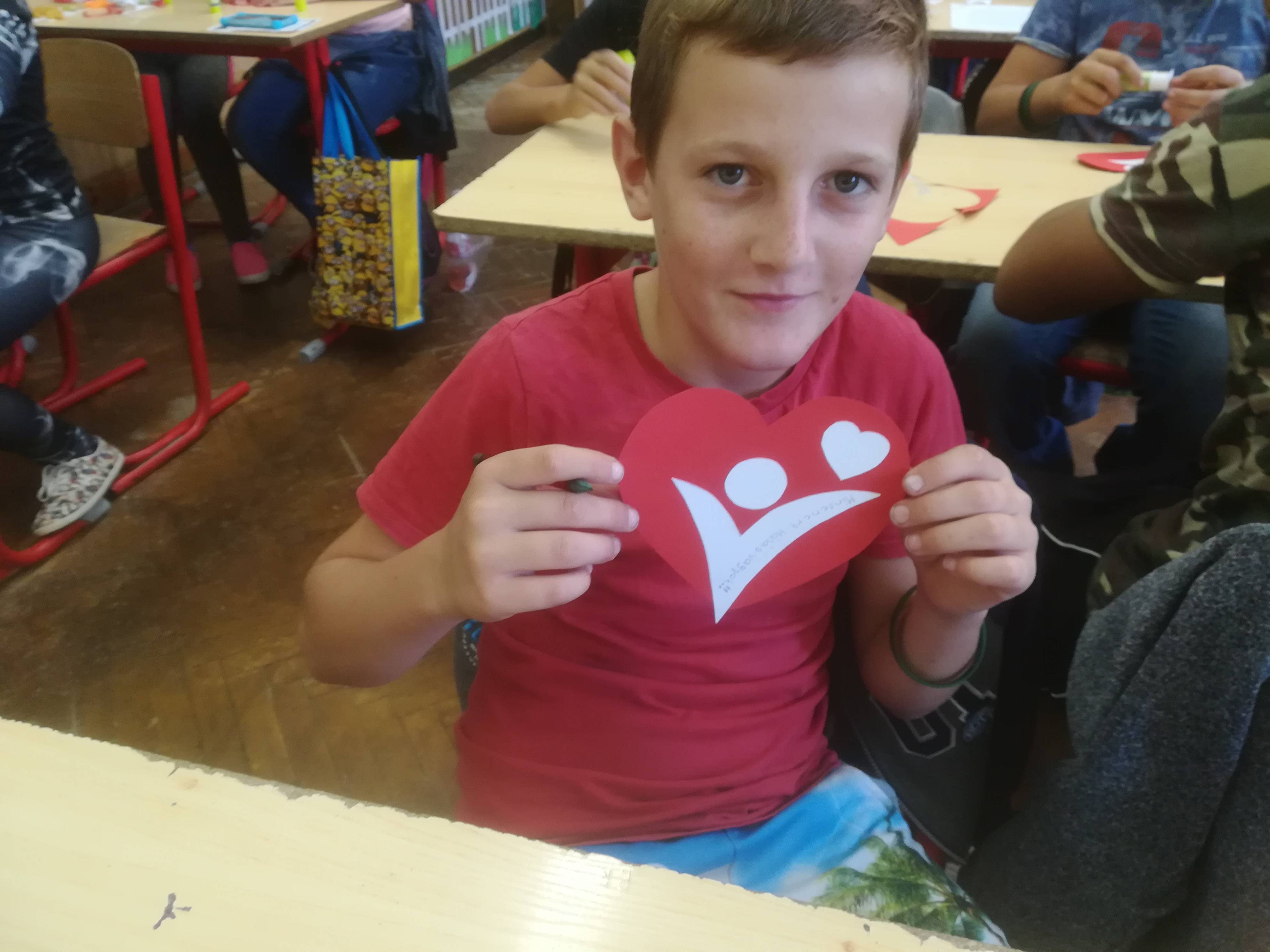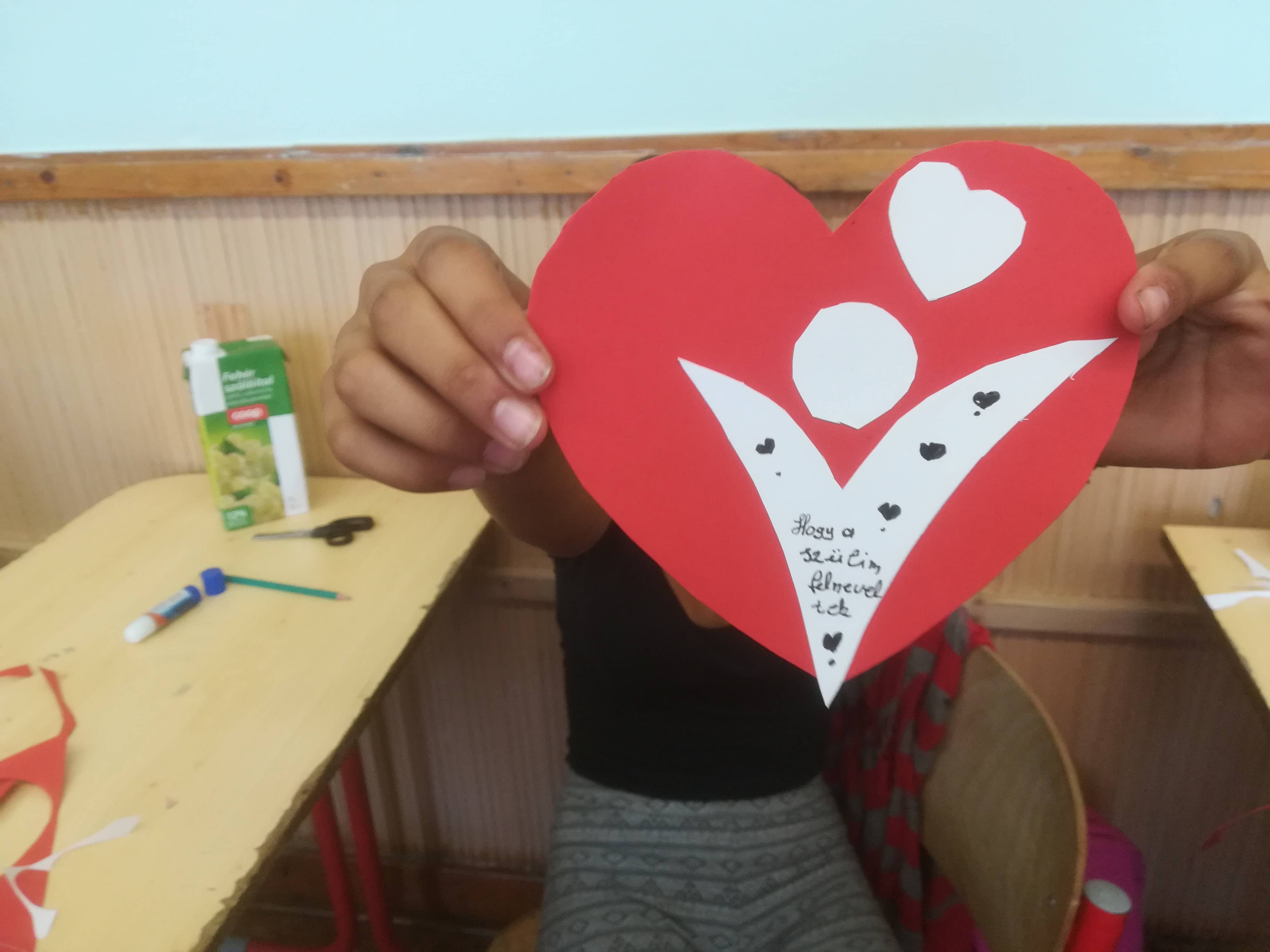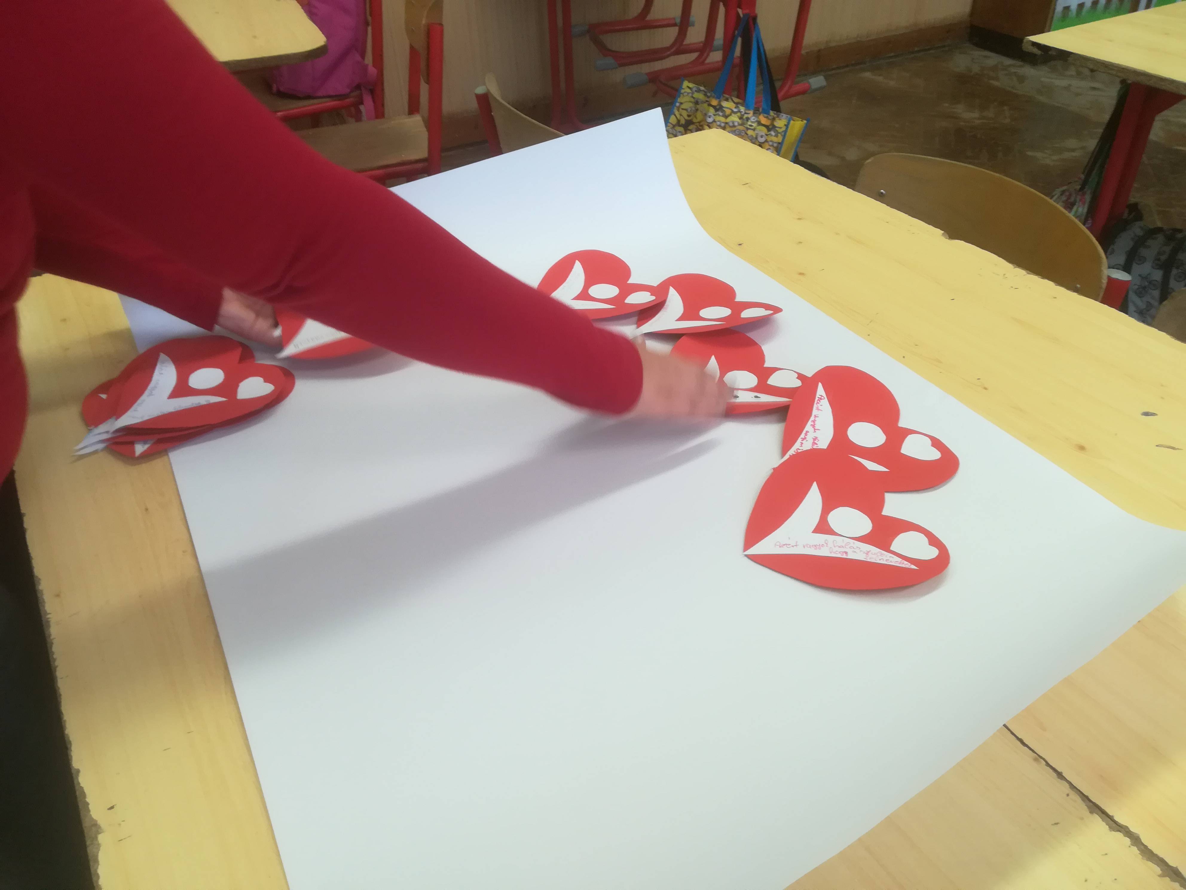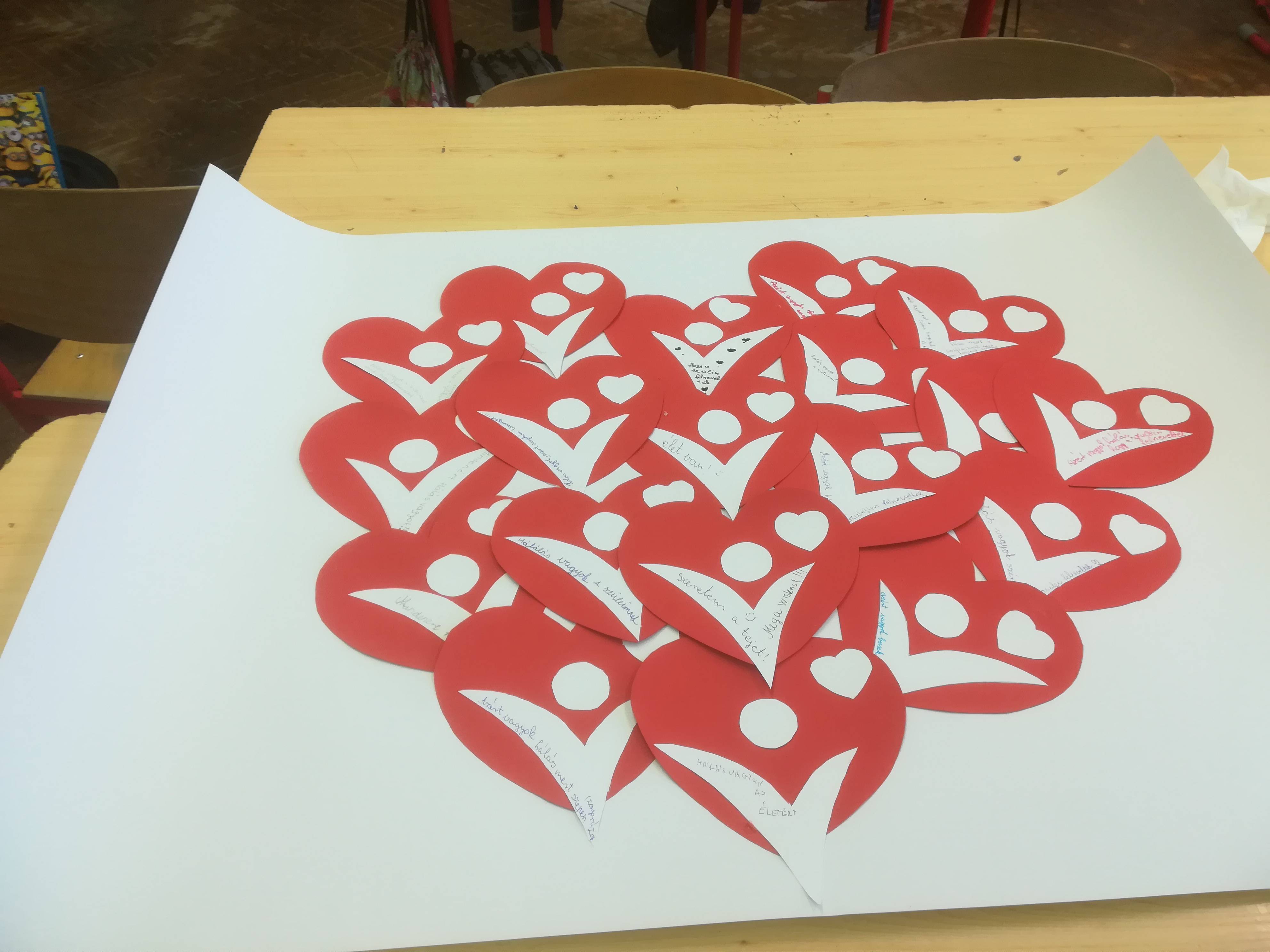 3. Majd a sok logóból egy nagy szívet készítettek tanulóim egy kartonra, így összegyűjtve mindenki háláját.Végül tanítottam nekik egy dalt, amit videón csatolok, bár csak az osztályból három lány mert elénekelni.