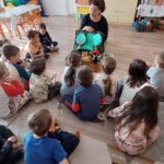 A hála témakörrel foglalkoztunk szeptemberben, a foglalkozást az Add tovább a falevelet c. játékkal vezettem be, ezzel segítve az elcsendesedėst, az egymásra való odafigyelést. Majd ezután következett a mese. Amikor a mesebőrönd előkerül, már minden gyermek tudja, hogy mesét fognak hallani, ilyenkor előkerülnek a mesepárnák és egymás mellé leülve várják, hogy elkezdődjék a foglalkozás. A hálafa történetét meséltem el a gyerekeknek, amelyet csendben és koncentráltan figyeltek, a bevezető, ráhangolódást segítő játéknak köszönhetően. Nagy hatást gyakorolt rájuk, amit mi sem bizonyít jobban, mint hogy kérték, hogy meséljem el még egyszer. Ezen a napon ugyan már nem jutott rá idő a délelőtt folyamán, de alvásidőben és másnap még egyszer meghallgathatták a mesét. A foglalkozást a hálafa megfestésével zártuk le, amihez örömmel csatlakozott minden egyes gyermek.