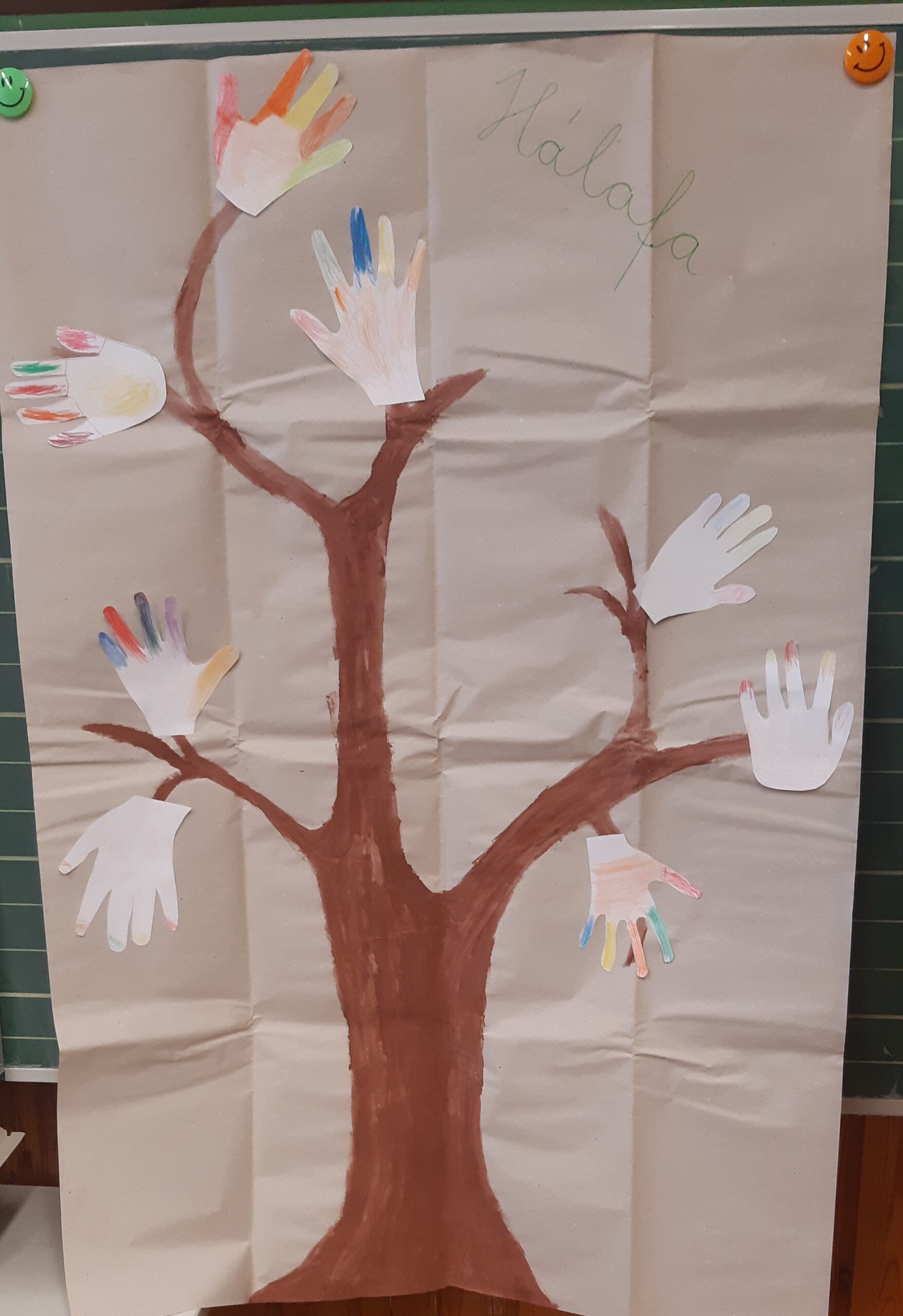 Ez volt az első boldogságóránk ezzel az osztállyal, akik idén kezdték az 1/1 osztályt. A „Fújj-fújj” relaxációs gyakorlattal kezdtünk, majd meghallgattuk a hála hónap dalát. Körbeültünk, és az „Add tovább a falevelet!” játékot játszottuk, ami nagyon jól sikerült. Ügyesen tudtak figyelni egymásra. Ezután elbáboztam nekik a Maci bajban van mesét, és megbeszéltük, mivel számukra még elég nehezen értehető a hála, mint fogalom, majd a munkafüzetben kiszínezték a gyerekek, hogy miért hálásak. A foglalkozás végén közösen elkészítettük a hálafát, és feltettük a hála jelét az első lépcsőfokra. Úgy érzem, hogy ezek a boldogságórák hozzásegítenek ahhoz, hogy egy összetartó, egymásra figyelő kis közösséggé váljunk!