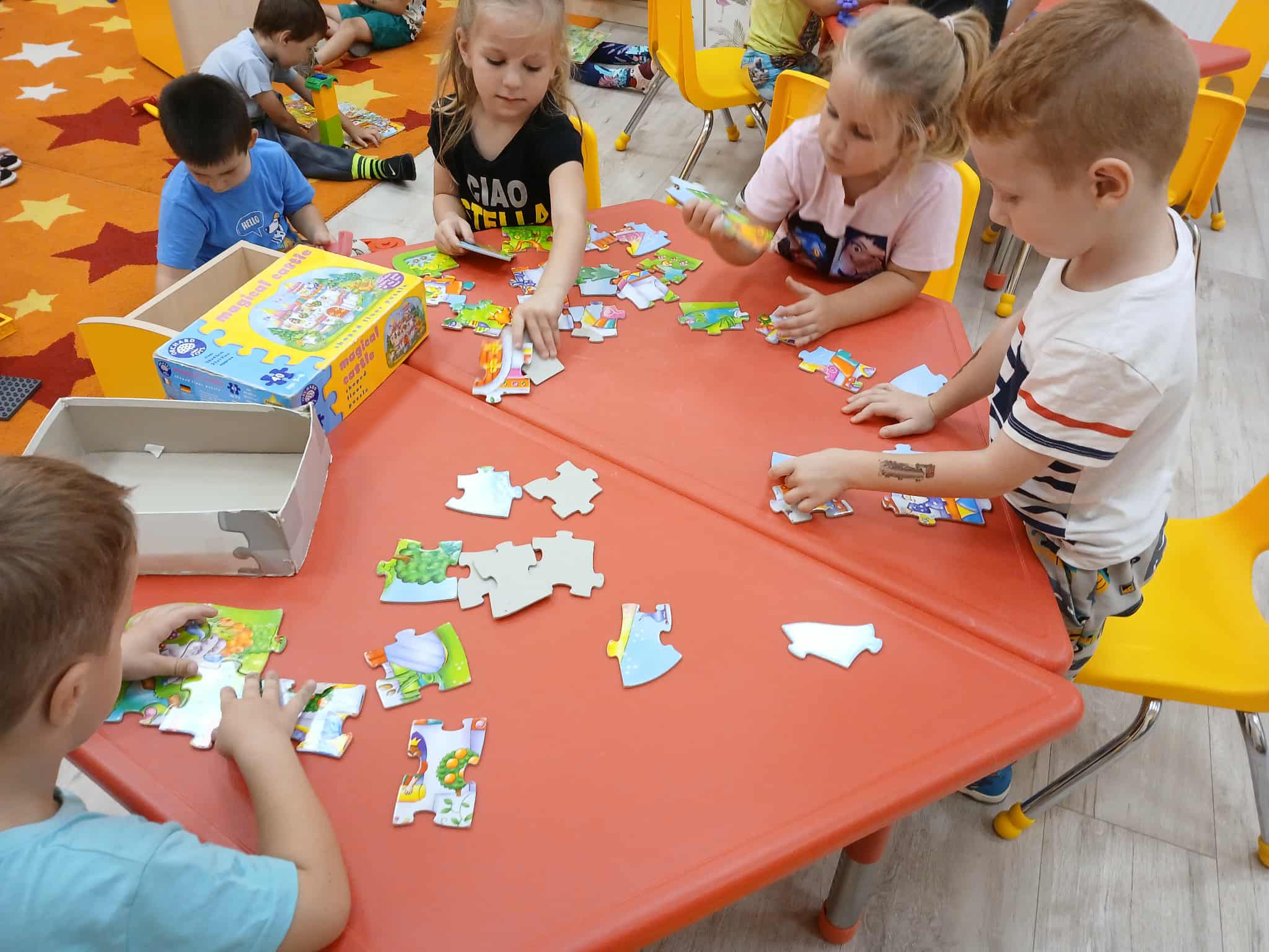Ki raktuk a Boldogság várat is. Vannak gyermekek, akik gyorsan kirakják a kirakókat, de vannak akik segítségre szorulnak.