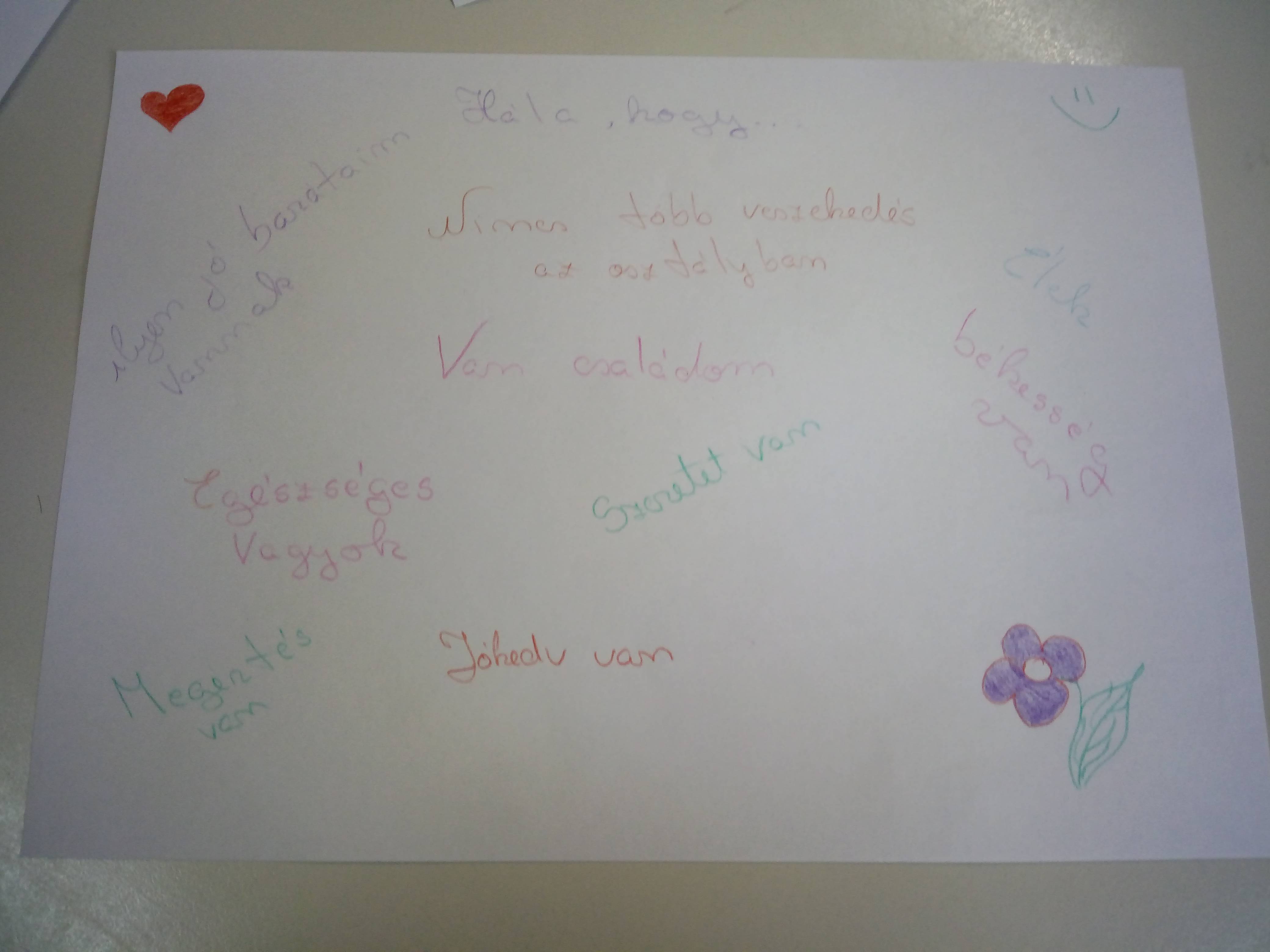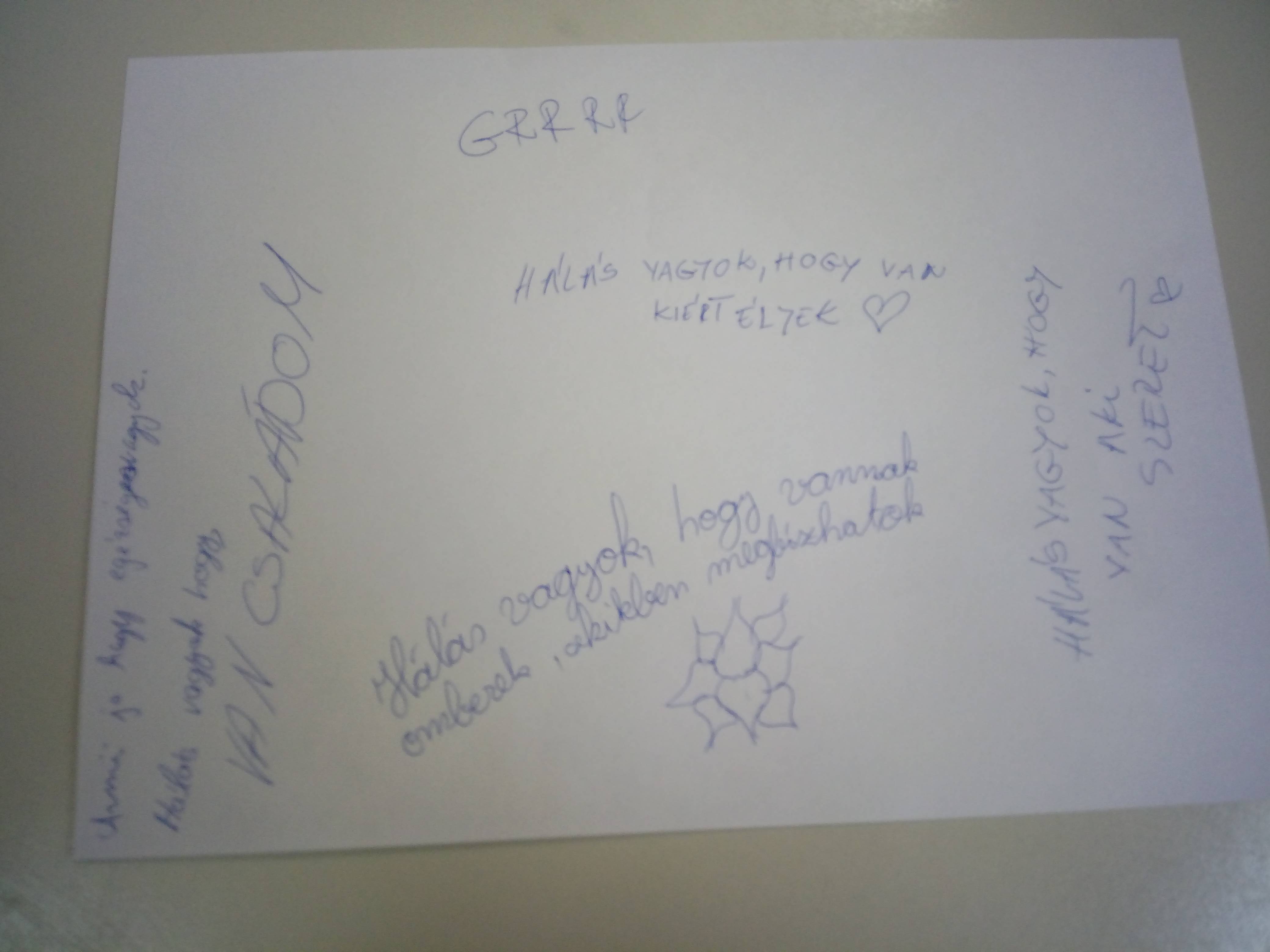 A nagyváradi Szent László Római Katolikus Teológiai Líceum 9. B osztályos tanulói ebben a tanévben kapcsolódtak be a boldogságóra programba. Az osztályfőnöki órákon kerül sor egy-egy téma feldolgozására és a hét folyamán fokozottan figyelünk arra, hogy mindenért hálát adjunk, ami a boldogság, az öröm, a pozitív életszemlélet alapja. A boldogságórára való ráhangolódást a boldogságmérő kérdőív kitöltésével kezdtük, majd azt kielemeztük. A diákok nagy érdeklődéssel várták az eredményt Arról is beszéltünk, hogy mit tehetünk annak érdekében, hogy fokozzuk a boldogságunkat. A hála téma feldolgozásánál segítségünkre volt Elizabeth Silance: A tanító tanítása című története, amit a diákokkal megbeszéltünk. A beszélgetés során megerősödött bennünk, hogy nagyon fontos egymásra figyeljünk, hogy pozitív tükör legyünk egymás számára, amelyben értékesnek látjuk magunkat. A foglalkozás végén csoportokban beszélték meg a diákok, hogy miért is adhatnának hálát, s ezt egy közös lapra is felírták. Egy következő osztályfőnöki órán a hálát tovább gyakoroltuk úgy, hogy egy lapra mindenkinek fel volt írva a neve, a lap többszörösen össze volt hajtva, hogy senki ne lássa, hogy előtte mit írtak az osztálytársáról. A név mellé pozitív tulajdonságokat kellett felírnunk, amit a társunkban felfedeztünk, és amiért hálát adunk. Nagy izgalommal adták körbe a lapokat, és nagy örömmel töltötte el őket, az a sok szép és jó, amit egymásról írtak. Mindenki felolvasta a pozitív tulajdonságokat, amelyeket írtak a társai. Sokan meglepődtek egy-egy tulajdonságon, amit saját magukban eddig nem fedeztek fel. Ezeket a diákokat megerősítettük abban, hogy higgyék el, mert még több szép, jó és igaz is van bennük. Nagyon boldogak és hálásak voltak az óra végén, és a jó tulajdonságokkal teli lapocskát olyan helyre tették, ahol könnyen rátalálnak, újból elolvashatják, hogy ebből erőt meríthessenek a jövőben is.