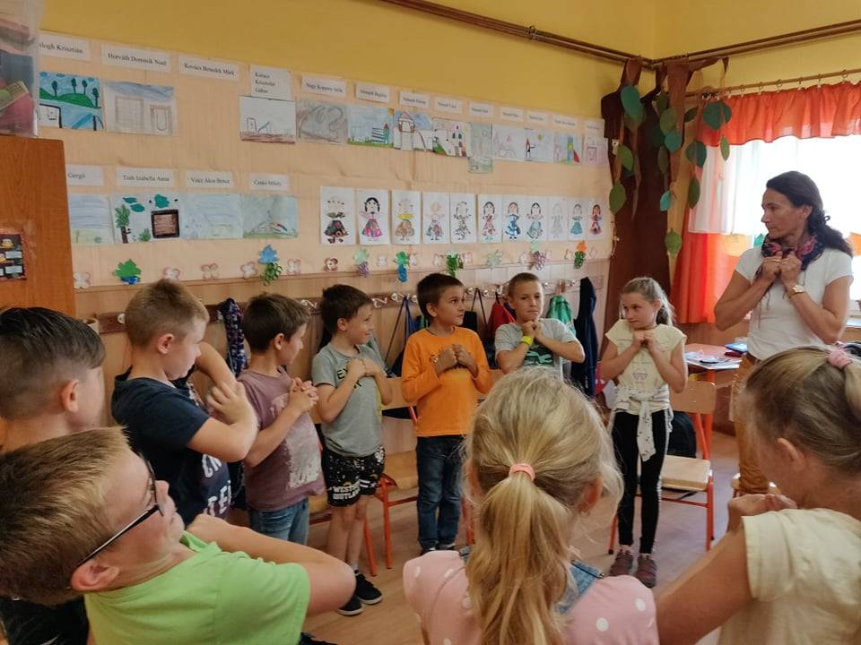 Bevezetésként megemlítettem a gyerekeknek, hogy pont ma van a hála világnapja. Az órát relaxációval kezdtük. Felelevenítettük a Napra forgó a napraforgó gyakorlatot, melyet nagyon élveztek a gyerekek, s a villámlazítással lazultunk az óra első részében. Beszélgettünk a háláról, s a rendkívüli vírushelyzet miatt örültünk és hálát adtunk a sorsnak, hogy újból együtt lehetünk. A beszélgetést követően felolvastam a tanítványaimnak A csodakantár című mesét. Megbeszéltük a meseszereplők helyzetét, s ki kinek volt hálás a mesében. Csoportokat alakítva elkészítették a tanulók a nyári élményeikhez kapcsolódó rajzokat a leghálásabb pillanataikról. Hálánk kimutatása céljából szeretet kuponokat készítettünk, s a hónap folyamán gesztusként átadták kiszemeltjeiknek a gyerekek. A kuponok nem csak szülőknek, hanem egymásnak is készültek. Jó volt látni, ahogy hálájuk jelét egymásnak is próbálják kimutatni. A rajzos feladatok készítése során többször meghallgattuk a hónap dalát. Zárásként meditáltunk.