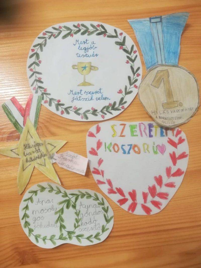 A hála témakörét körüljárva felelevenítettük a tavalyi gondolatainkat, emlékeinket. Idén hála érdemrendet készítettünk annak a személynek, akinek valamiért hálásak lehetnek. Összegyűjtöttük, hogy az élet egyéb területein miért lehetünk hálásak, illetve A Hála sála történetéből páros munkában képregényt készítettünk.