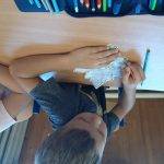Az elsősökkel relaxációs gyakorlatok után megbeszéltük a hála fogalmát, jelentését. Életkori sajátosságaiknak megfelelően érzékeltettem velük a hála és köszönet fontosságát, jelentősségét. Kiemeltük a kétoldalúságát, azaz annak is jó, aki adja, és annak is, aki kapja. Életközeli példákon a mindennapiéletből vett helyzeteken át mondtunk példákat a hála gyakorlására, szükségességére és fontoságára. A mesén keresztül érzékeltettük a szereplők háhláját valaki iránt. Kiemeltük, hogy a hála nem csak nagy dolgokban fontos, hanem pici, apró örömöknél is. Aktívan elmondták, ők kinek és miért hálásak, miért tudnak köszönetet mondan, valamint azt is, hogy ők mit éreztek, ha nekik volt hálás valaki. Az óra produktuma a „hálafa” készítése volt. Mindenki egy levélre lerajzolva és kiszínezve fejezhette ki háláját valaki iránt.