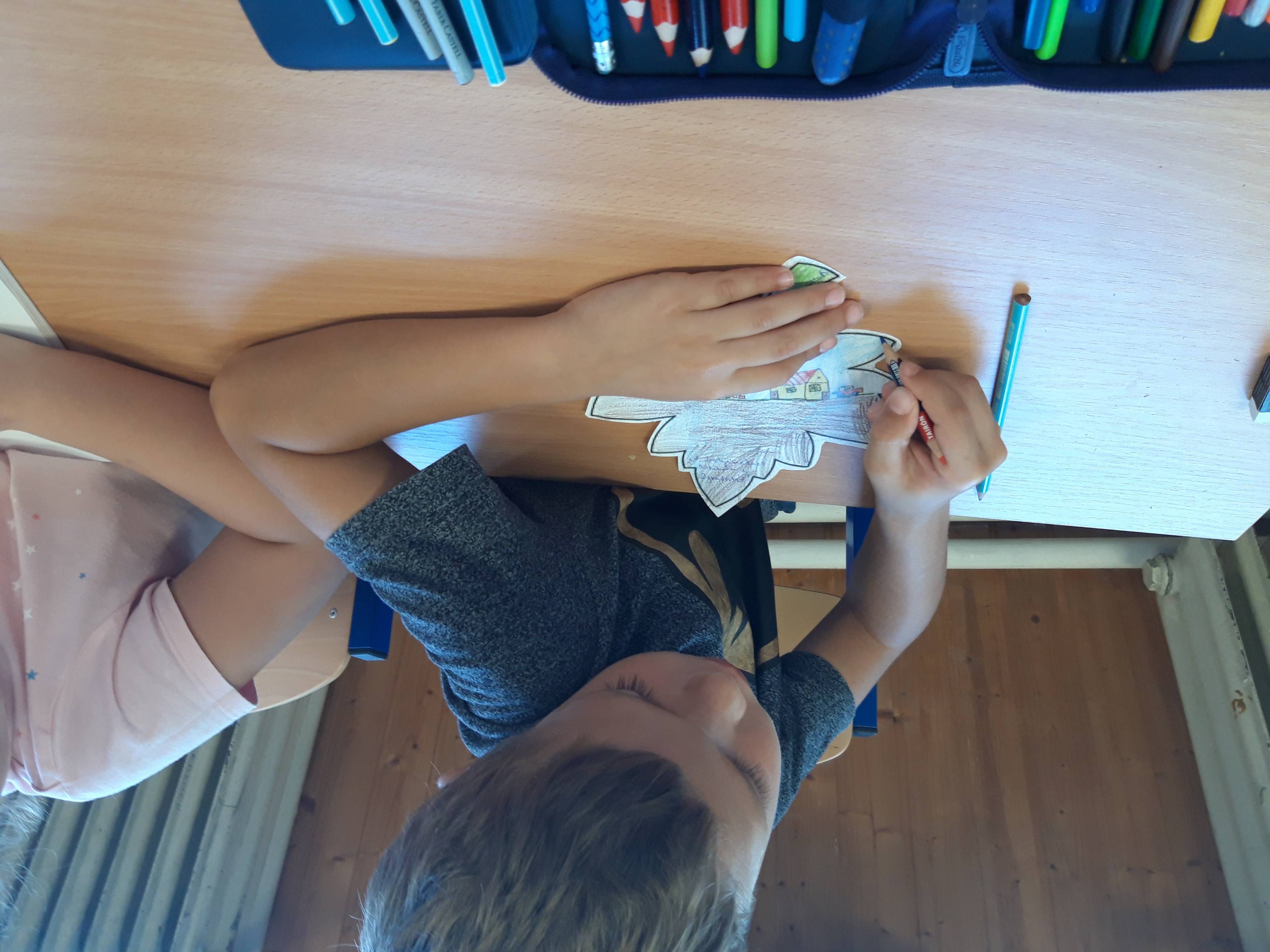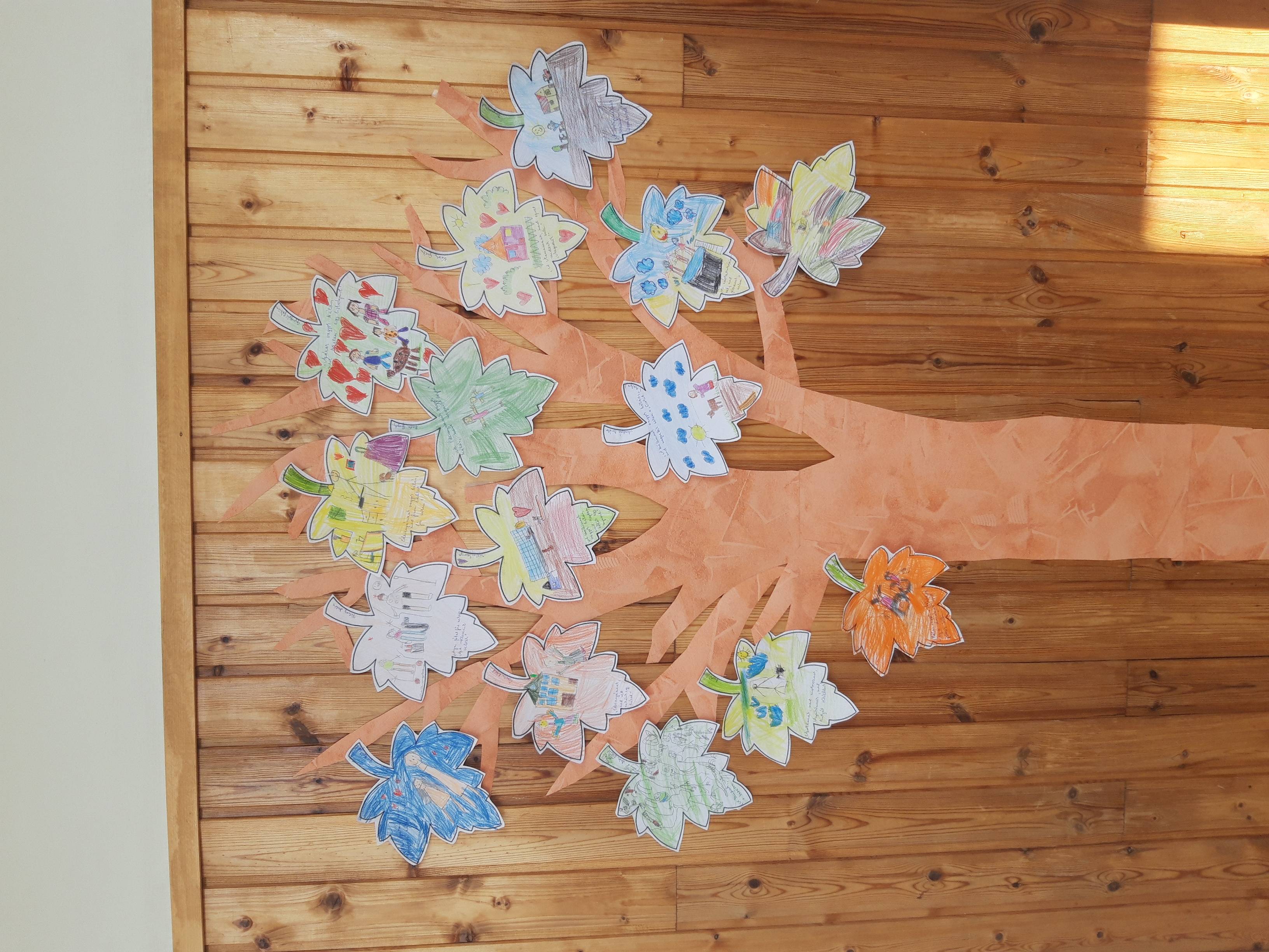 Az elsősökkel relaxációs gyakorlatok után megbeszéltük a hála fogalmát, jelentését. Életkori sajátosságaiknak megfelelően érzékeltettem velük a hála és köszönet fontosságát, jelentősségét. Kiemeltük a kétoldalúságát, azaz annak is jó, aki adja, és annak is, aki kapja. Életközeli példákon a mindennapiéletből vett helyzeteken át mondtunk példákat a hála gyakorlására, szükségességére és fontoságára. A mesén keresztül érzékeltettük a szereplők háhláját valaki iránt. Kiemeltük, hogy a hála nem csak nagy dolgokban fontos, hanem pici, apró örömöknél is. Aktívan elmondták, ők kinek és miért hálásak, miért tudnak köszönetet mondan, valamint azt is, hogy ők mit éreztek, ha nekik volt hálás valaki. Az óra produktuma a „hálafa” készítése volt. Mindenki egy levélre lerajzolva és kiszínezve fejezhette ki háláját valaki iránt.
