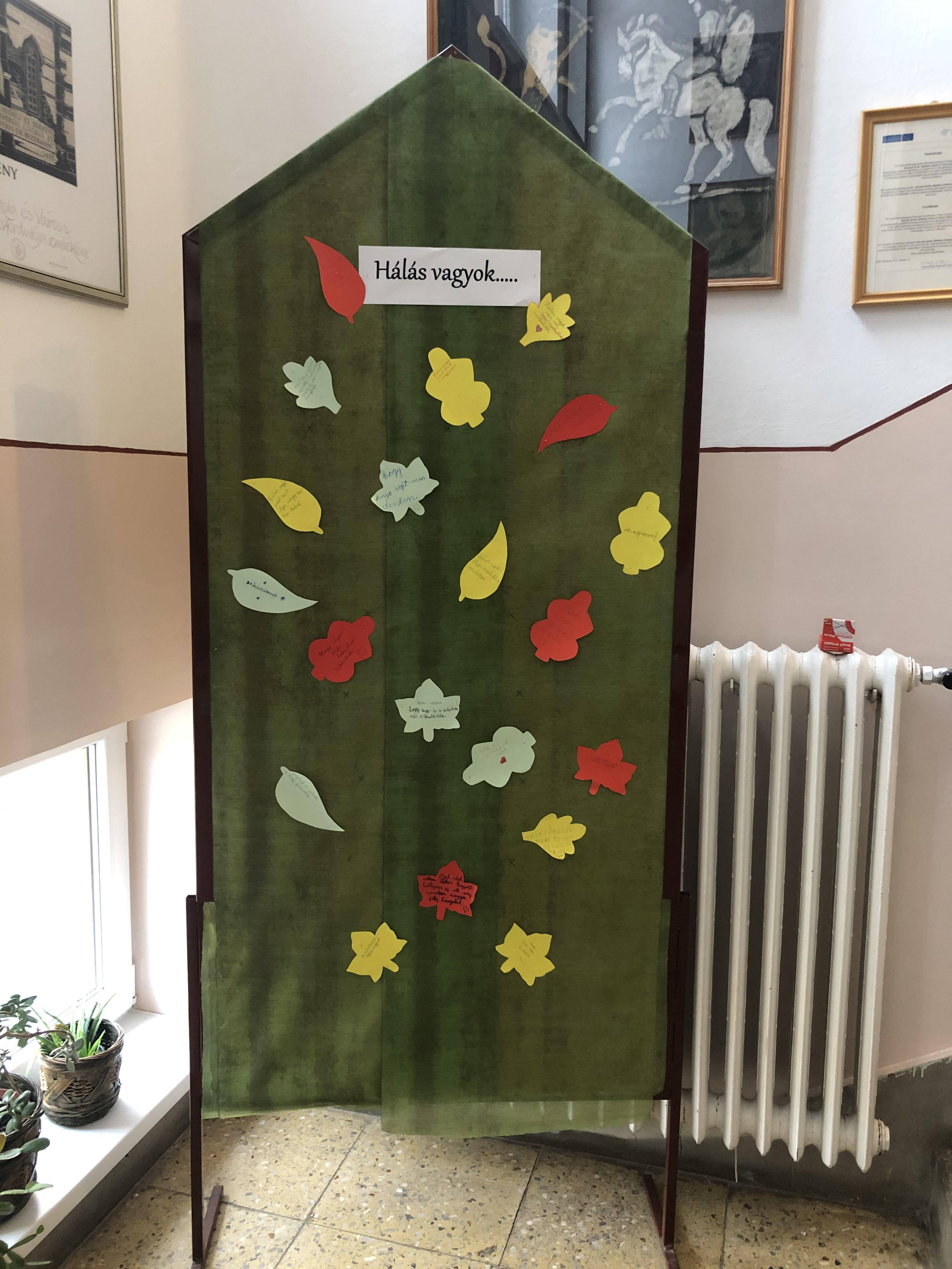 A gyerekek levelekre írták azt, hogy kinek miért hálásak. Ezeket a leveleket a folyosón lévő táblára tűzték, így ezt az iskola többi tanulója is folytathatta.