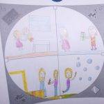 Az óra első felében a „hála” szó jelentéséről beszélgettünk. A gyerekek, példákon keresztül, elmesélték kinek, miért voltak hálásak eddig. Utána csoportonként egy-egy kitalált történetben játszották el, hogyan hálálhatnak meg valamit a mindennapokban. Majd páros munkában a hálakörbe le is rajzolták a velük megtörtént eseményeket. A foglalkozás végén a körjátékban véletlenszerűen egymáshoz került párok fogalmazták meg egymásnak, hogy miért éreznek hálát a másik iránt. Jó hangulatú, vidám boldogságóra keretében tudtuk ezt a témát feldolgozni.