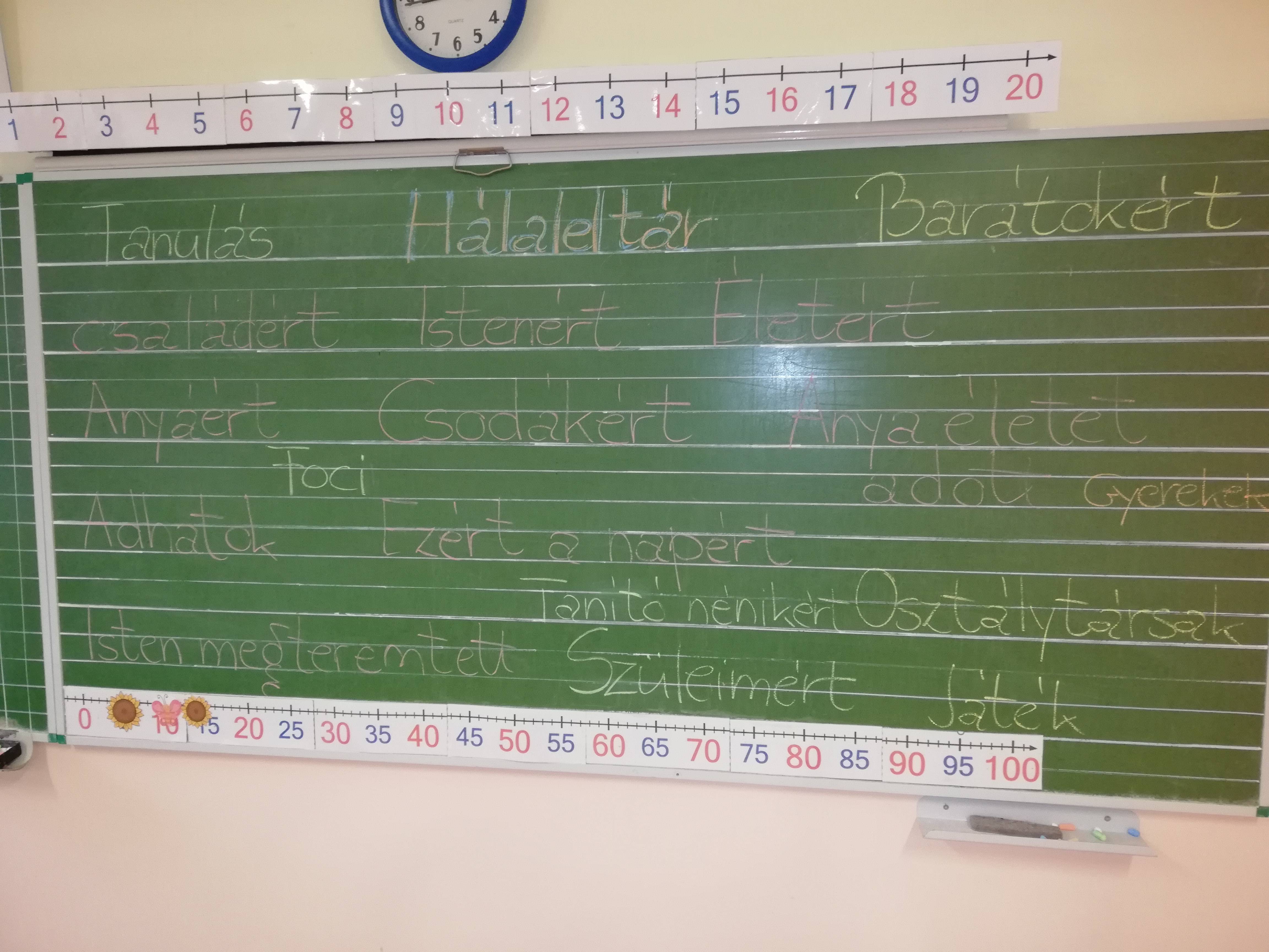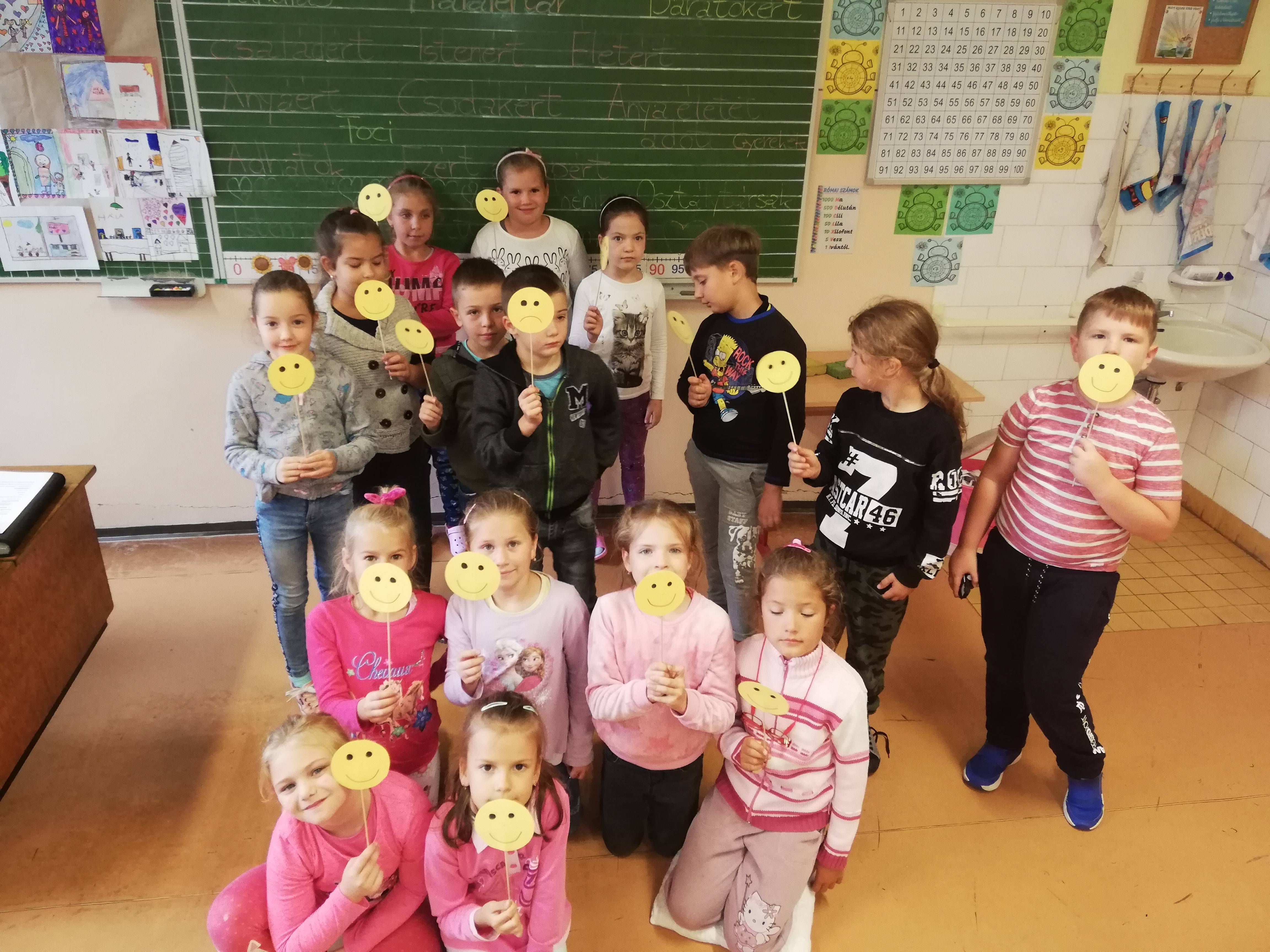 A Boldogságórámat a Boldogiskola programjának ismertetésével kezdtem. Majd minden tanuló megkapta a maga kis Boldogság füzetét, melybe a munkafüzetből másolt feladatok kerültek. Az első oldalon a Boldogság szó szerepelt, melyhez kapcsoltuk a saját ötleteinket. Mi tesz minket boldoggá? Mozgásalapú relaxációs gyakorlatként az :Együtt az Á,O,U hangokban feladatot választottam. Majd a Napimádós gyakorlattal engedtük el rosszat a kis lelkekből.Majd meghallgattuk a hónap dalát, amit nem volt elég egyszer meghallgatni. Azonnal kérték a gyerekek, hogy indítsam újra, miközben ők a boldogság betűit és a hálafájukat színezték. Elkészítettük a Hálaleltárunkat, itt felsorolták mindazt, amiért hálásak a napok során. Páros munkában megfejtették a keresztrejtvényt, majd kitöltötték a táblázatot, melybe felsorolták, hogy a nap folyamán miért hálása. Volt olyan manócska, akinek nem volt elég a kis hely, egy külön oldalra rajzolta a legfontosabb dolgot, amiért aznap hálás volt. Feladatként beragasztottam a füzetükbe a Családi hálaleltár feladatot is. Nagyon megható élmény volt, hogy sok gyerkőc, tudta a kérdésre a választ. A szülők , azért hálásak, mert ők vannak nekik. A Hálaablakokat párokban rajzolták meg. Az ablak egyik oldalába az egyik gyerkőc, a másikba a másik gyerkőc készíttette el a rajzát. Az elkészült ablakokat egy nagy hálaházikóra ragasztottuk fel, melyen a Hálaleltárba felsorolt szavak díszítették a szívecske cserepeket. Az órát a záró meditációval és a hangulatjelek kiválasztásával zártuk. Minden manócska mosolygós arcocskát mutatva fejeztük be a foglalkozást.