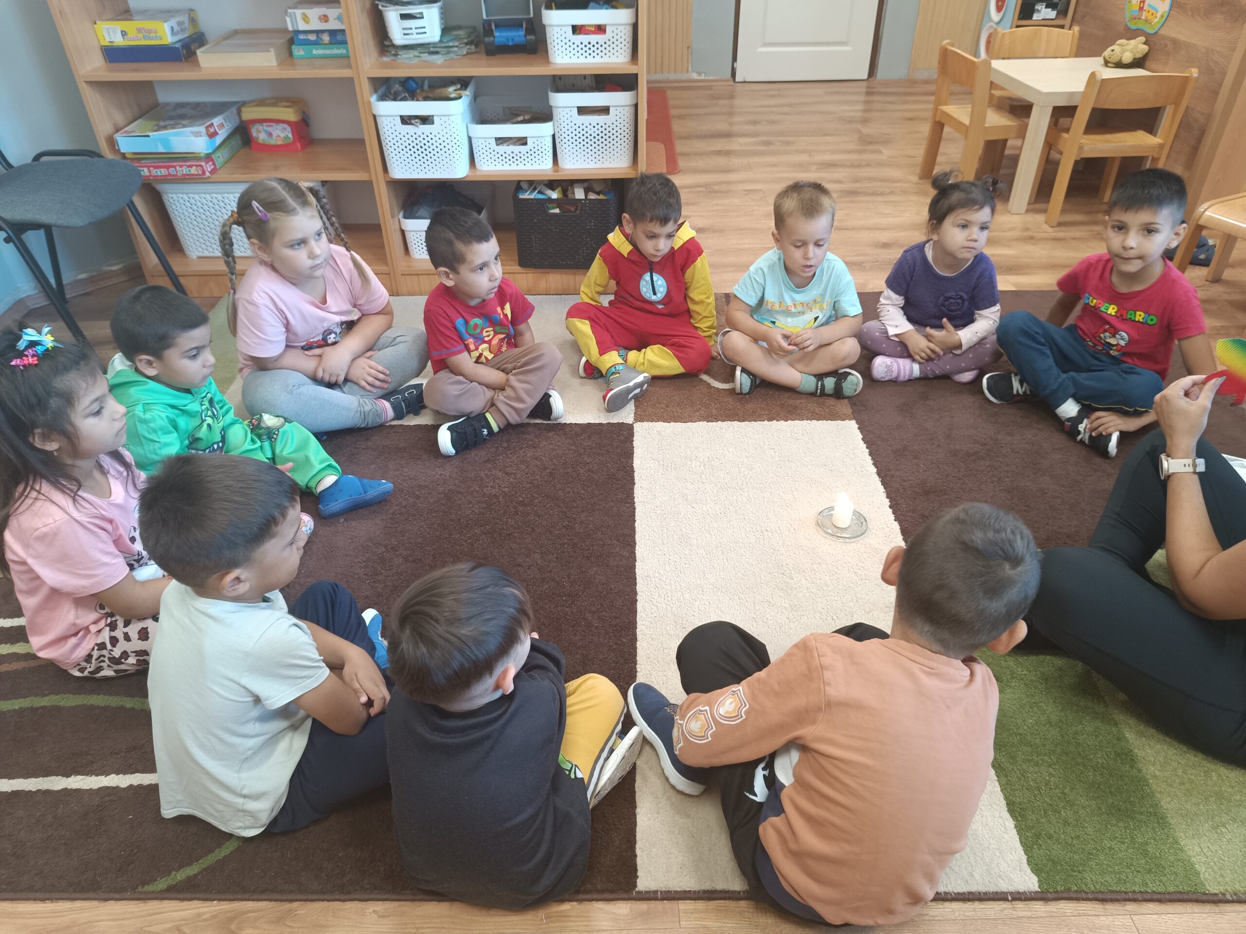 A gyerekeket megkérem, hogy üljenek le a szőnyeg szélére. Megkérdezem tőlük, tudják-e milyen nevezetes nap van ma? Közösen megbeszéljük a naphoz kapcsolódó legfontosabb ismereteket és tisztázom velük, mi a hála szó jelentése.