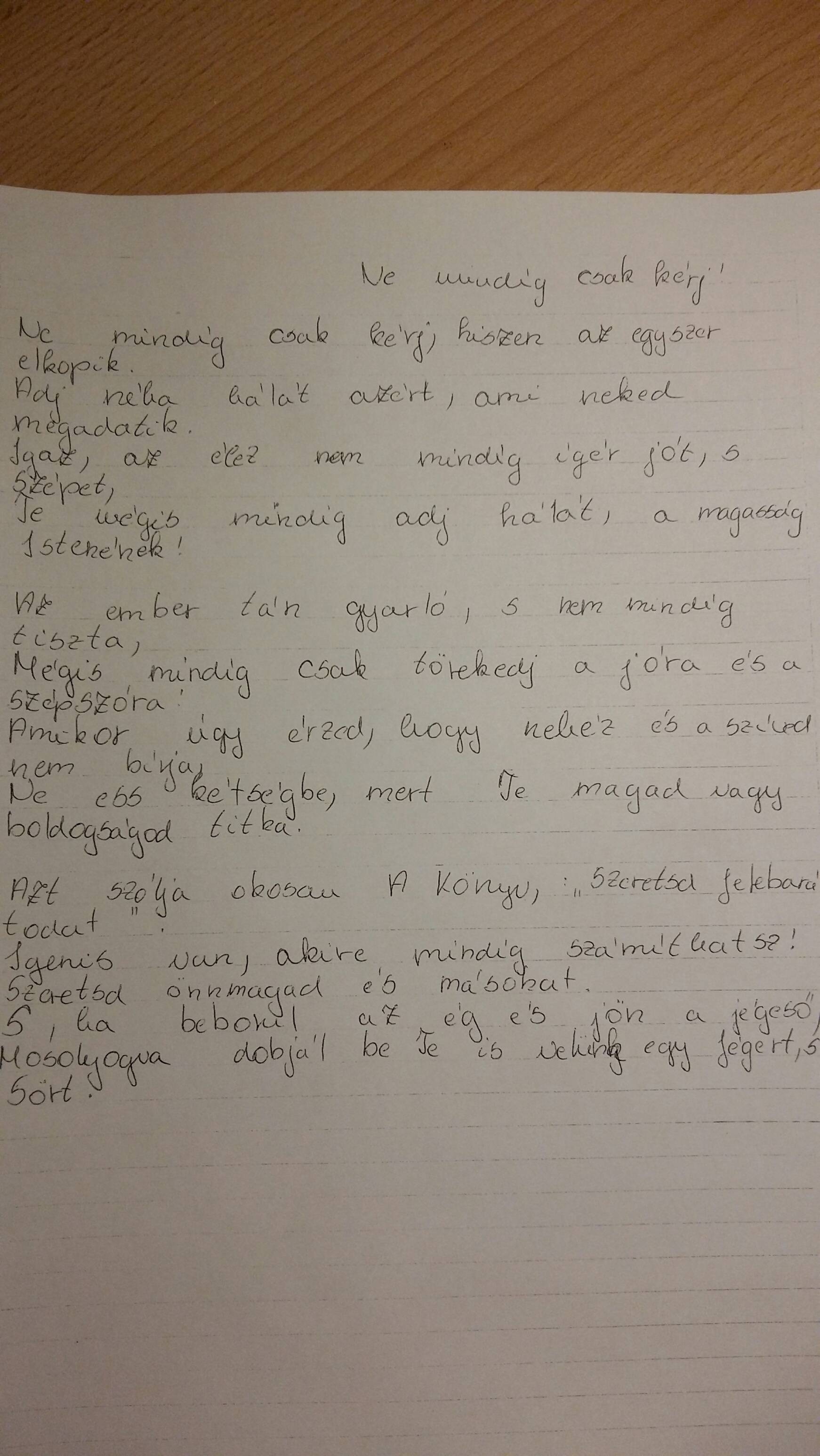A háláról írt saját versét olvassa fel az egyik tanuló. Méltatjuk a mondanivalóját.