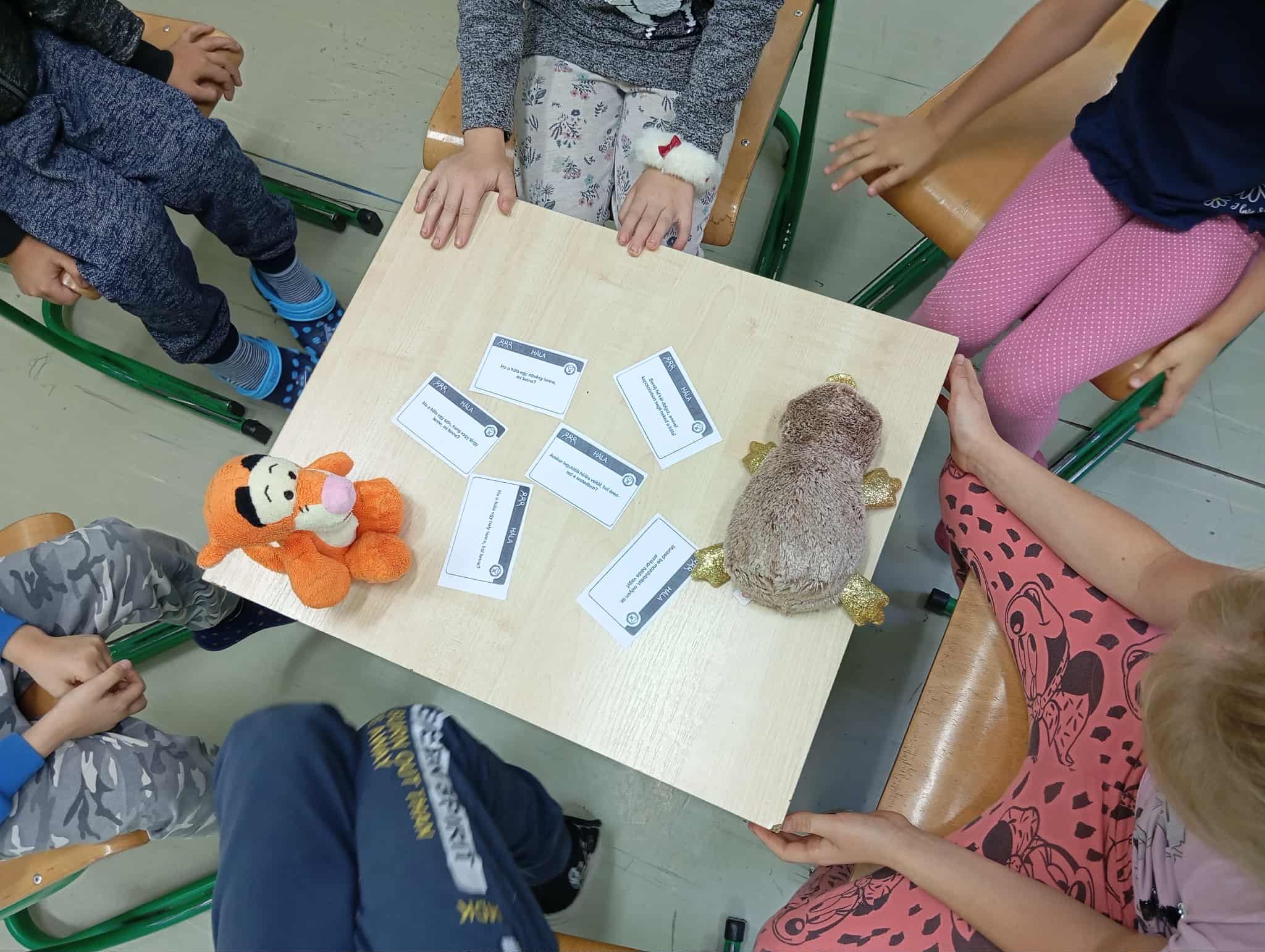 – Osztályfőnöki órán HÁLA kérdéskártyákat dolgoztuk fel. Körbeültünk, tanulástsegítő állatkáknak meséltek, válaszoltak kérdésekre.