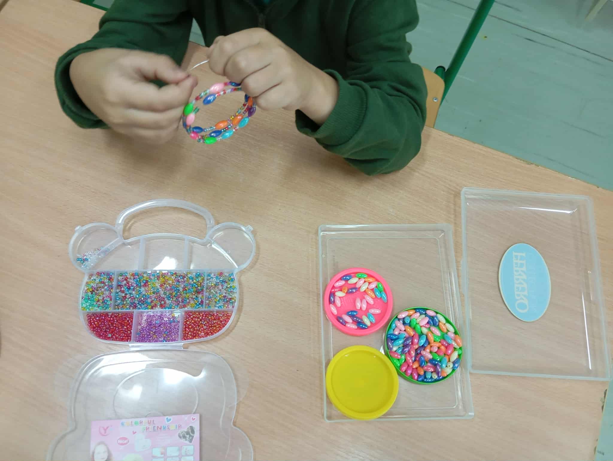 – Képzőművészet szakkör – finommotorika fejlesztése – gyögykarkötő készült kedves barátunknak, családtagnak/anyukának, hála jelképeként.