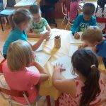 A délelőtti órákban a Boldogságórát megelőzőleg is már hallgattuk a csoportban Bagdy Bella: Szép nap ölelj most át engem című dalt, így aztán a gyermekek könnyedén ráhangolódtak a Boldogságóra tevékenységre is. A hála témakörét a gyermekeket körülvevő természet felől közelítettem meg, játékosan és cselekedtetve. Érdeklődésük felkeltésével, érzelmeik alakításával sikerült a hála fogalmát elmélyíteni a gyermekekben. Szívesen rajzolták le, hogy a mesébe szőtt almafa, miért hálás a természetnek és az embernek, valamint az ember miért hálás az almafának és a természetnek.
