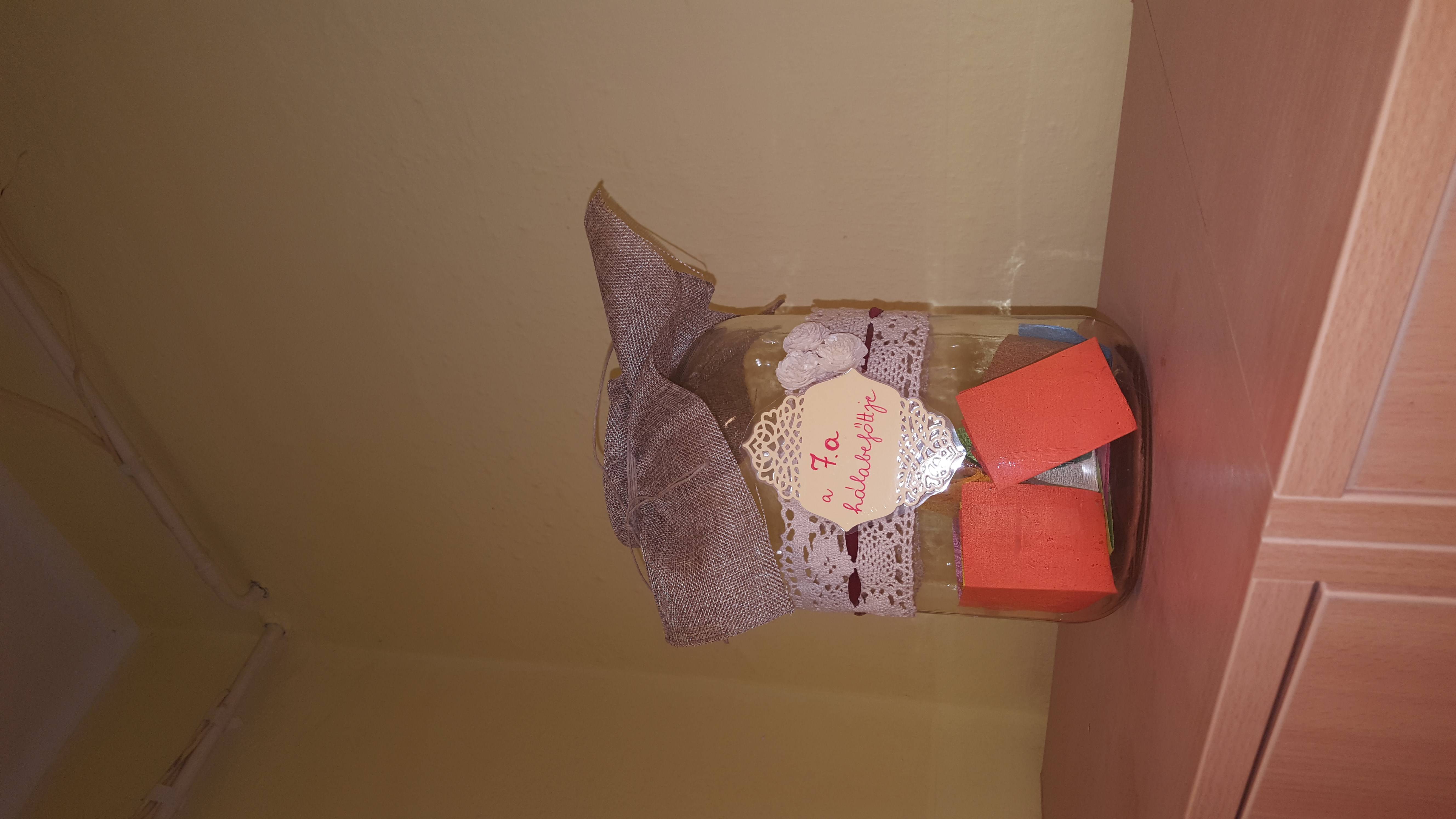 Kis létszámú osztályommal osztályfőnöki óra keretében tárgyaltuk a hála fogalmát, ki miért hálás, napi szinten és eddigi életében. Kinek mondana köszönetet, hogy fejezné ki a háláját és milyen eszközökkel tenné. Végül hálabefőttet készítettünk és a legfontosabb gondolatát mindenki ráírta. Lezártuk és elhatároztuk, hogy minden hónapban a boldogságóra legfontosabb gondolatát beledobjuk. Közben hallgattuk a hála dalt.