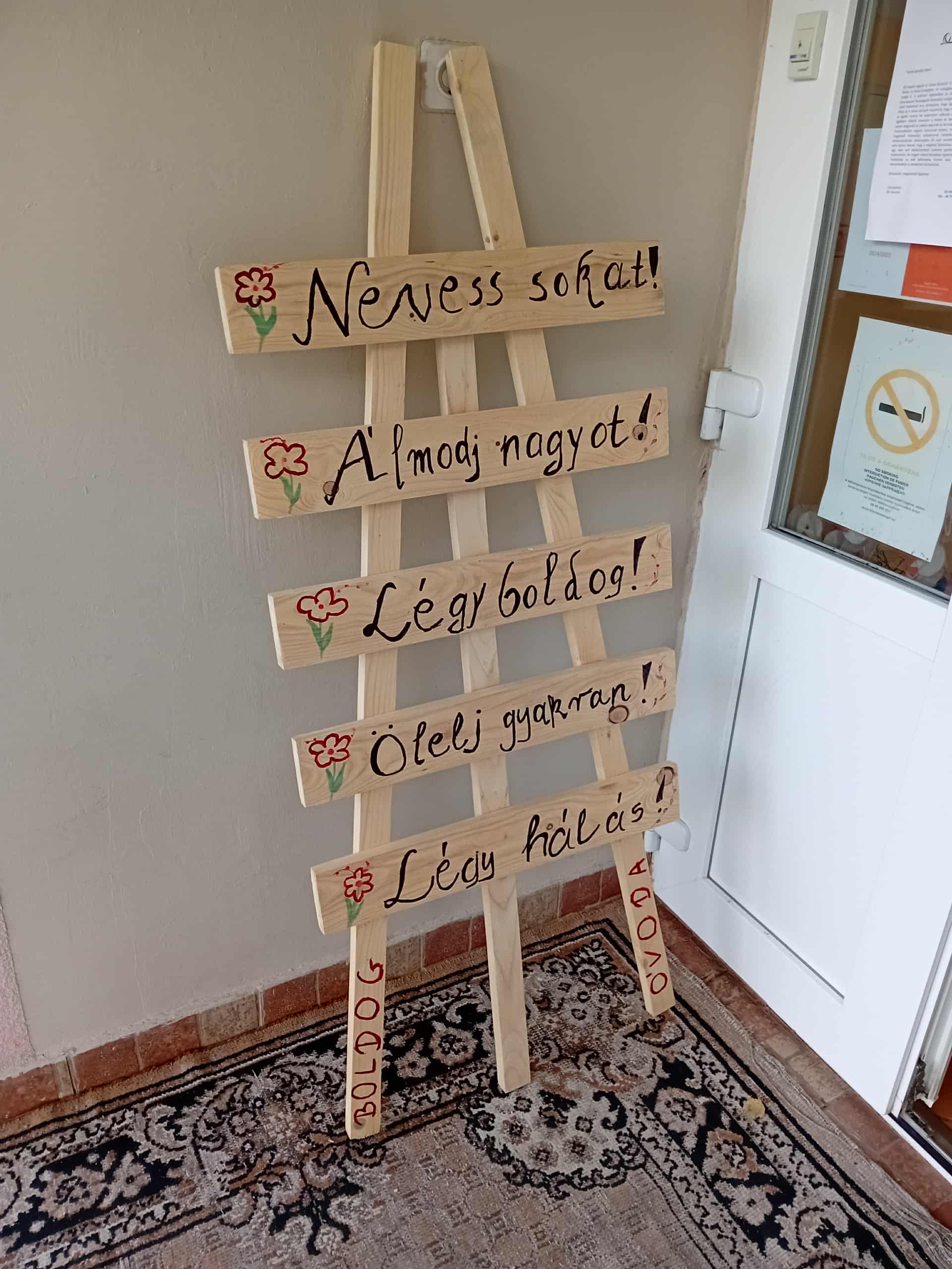 A Hála a legfontosabb fogalom az életünkben, anélkül nem lehet egymással élni, dolgozni, időt tölteni. Minden nap ki kellene fejeznünk egymás iránti hálánkat, hogy érezzük, mennyire fontosak vagyunk, egymásnak. A gyerekek sajnos, nem nagyon vannak tisztában ezzel a fogalommal, mivel az otthoni környezetben nem tanítják ezeket nekik, ezért próbáljuk az óvoda mindennapi életébe bevinni, spontán foglalkozások keretében is. Mivel szeptemberben volt a Hála Világnapja, emiatt az óvoda udvarára egy szemléltető táblát készíttetünk, hogy ezáltal a szülőkben is tudatosítsuk, mennyire fontos A Boldogság, a Szeretet, A Hála, Az Ölelés, Az öröm, amelyek nélkül nem igazi az Élet, amit élünk.