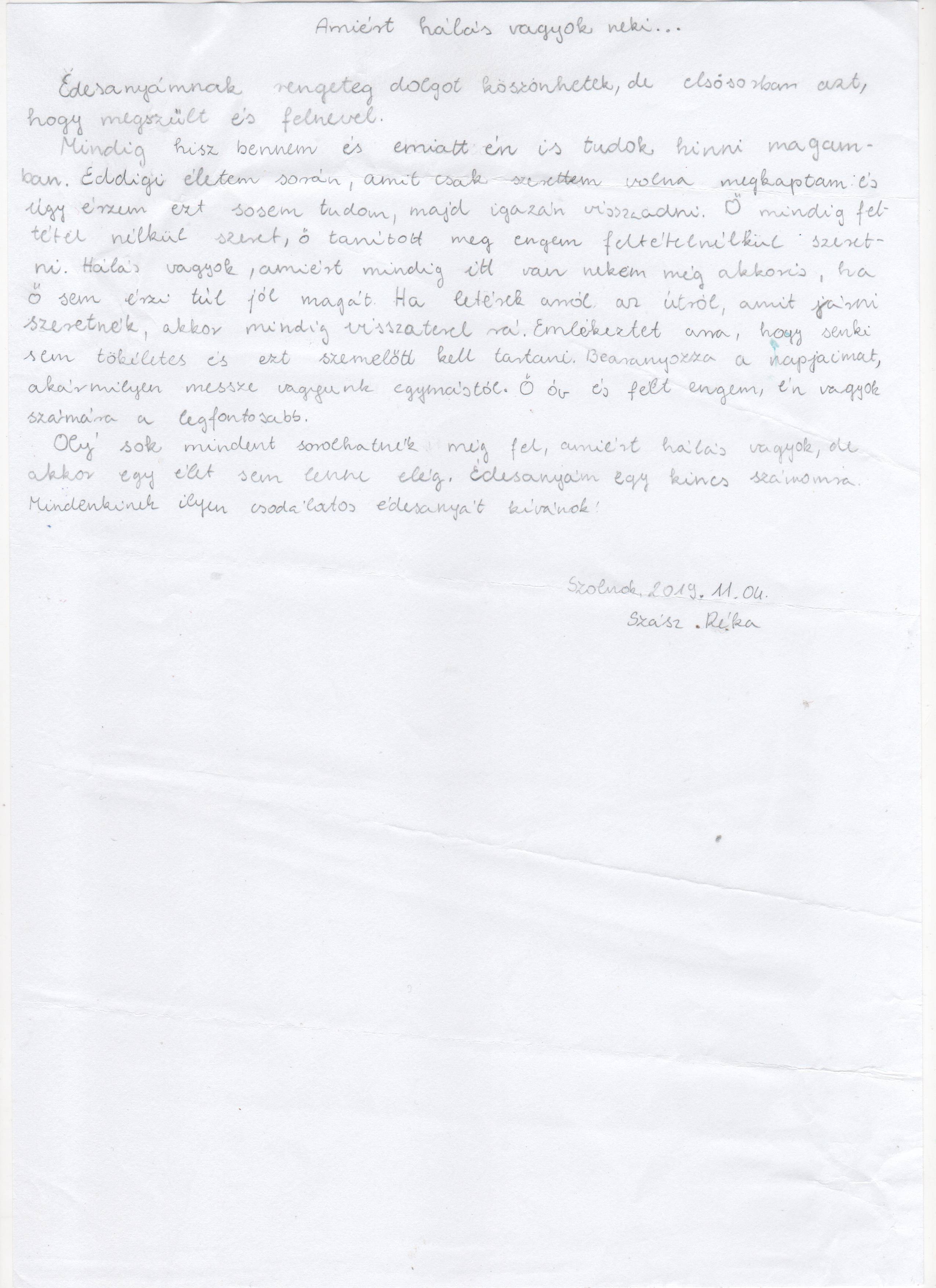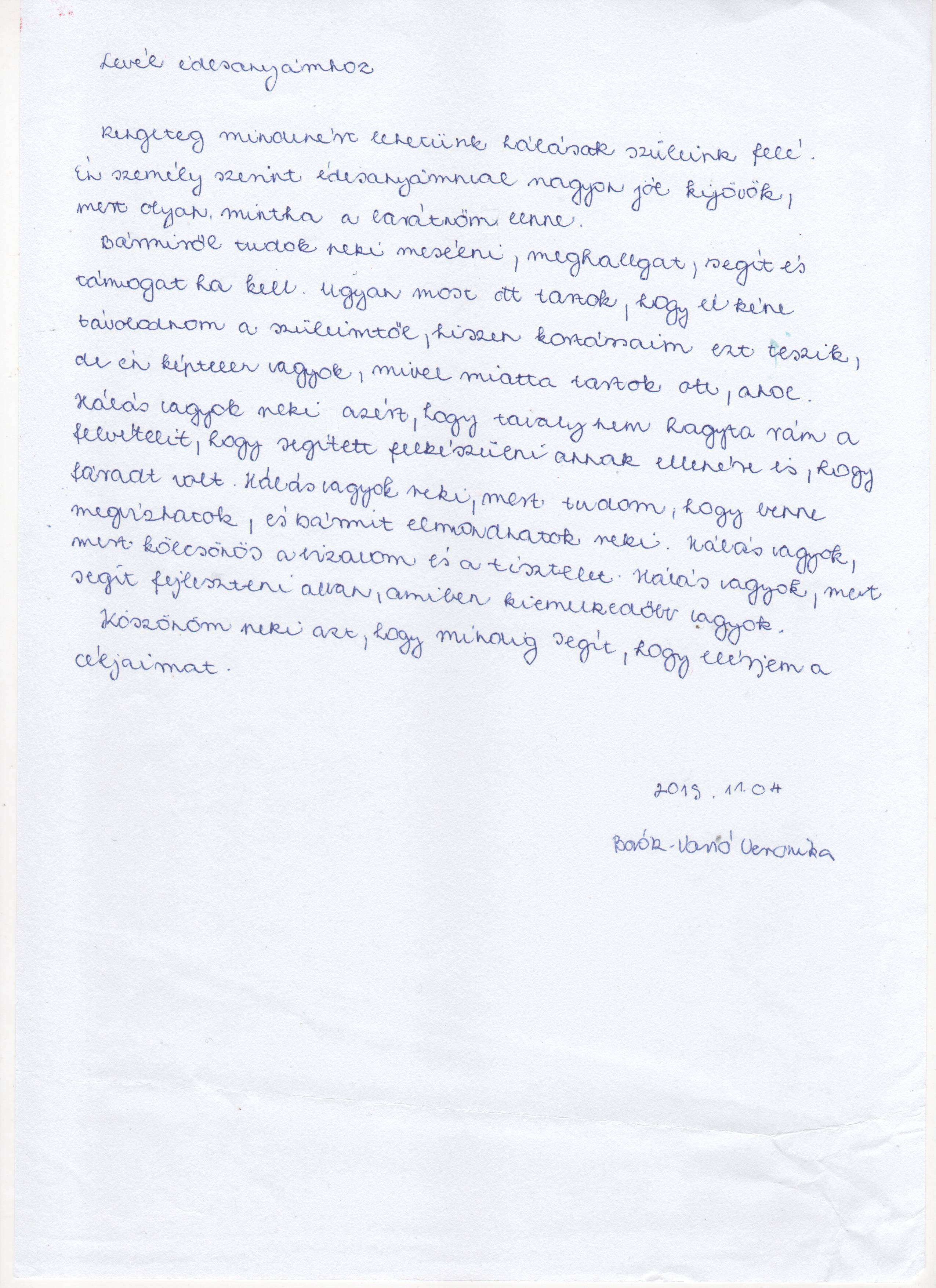 Gondoljátok át, ti kinek és miért vagytok a leghálásabbak, majd mondjatok köszönetet (pl. levél formában )