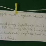 A 7. osztályos diákokkal hálaüzeneteket írtunk családtagjainknak, iskolai dolgozóknak, illetve az osztályterembe kihelyezett Hála üvegünket is megtöltöttük kedves gondolatokkal a szeptember hónaphoz kapcsolódóan. Elültettünk néhány virágmagot is, amelyeknek a földjét a hálagondolataink számának megfelelően kanalaztuk össze, így elegendő virágföld gyűlt össze az ültetéshez. A következő napokban kíváncsian várjuk majd, hogy mikor nyílik ki a hálavirágunk a termünkben.