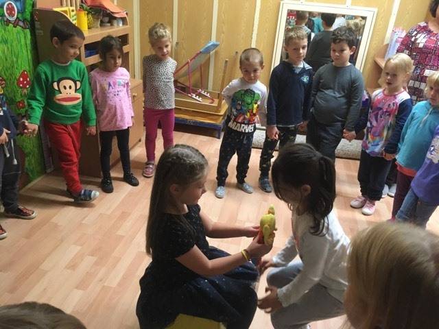 -Kinek és miért vagy hálás a csoportban? Körben álltunk, egy gyermek középre ült Boldog Blankával. Aki szeretné, elmondhatja Neki, hogy mit köszön kis társának, majd átadja Blankát és a helyét. A válaszokat főként a barátságért, otthonába, születésnapra való elhívásért és a közös játékért érzett érzelmek mozgatták.