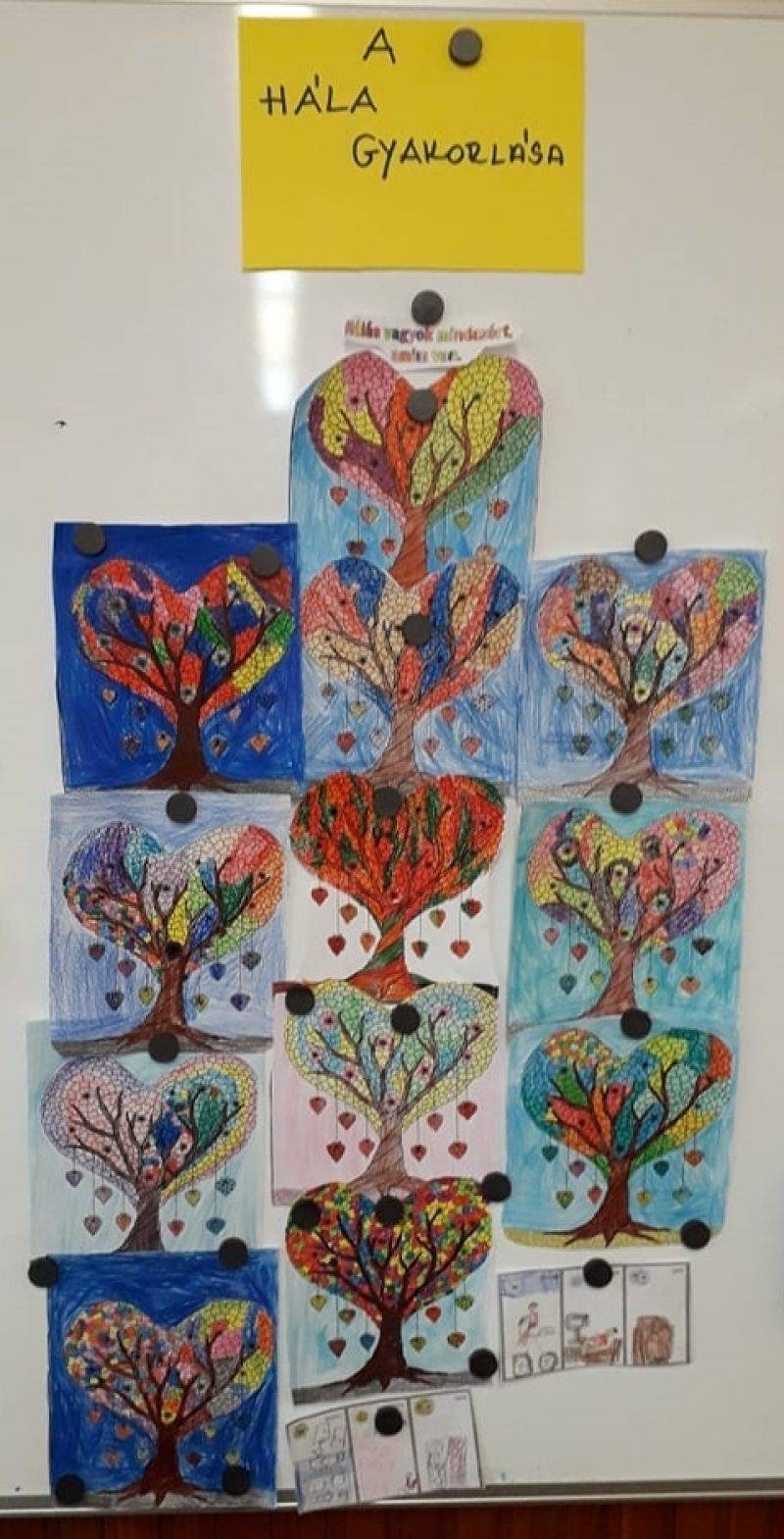 A 2.a osztályos gyerekek a relaxációs gyakorlat után megbeszélték kinek mit jelent a hála. Ezután elkészítettük a hálaszívet.
