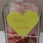 Ezt követően arról beszélgettünk, hogy mit jelent a hála szó. Hogyan fejezhetjük ki hálánkat. Hálabefőttet készítettek a gyerekek apró rajzokkal, melyben lerajzolták, hogy kinek miért lehetnek hálásak, és a közös munkálkodás közben meghallgattuk Bagdi Bella: Szép nap ölelj most át engem című dalát.