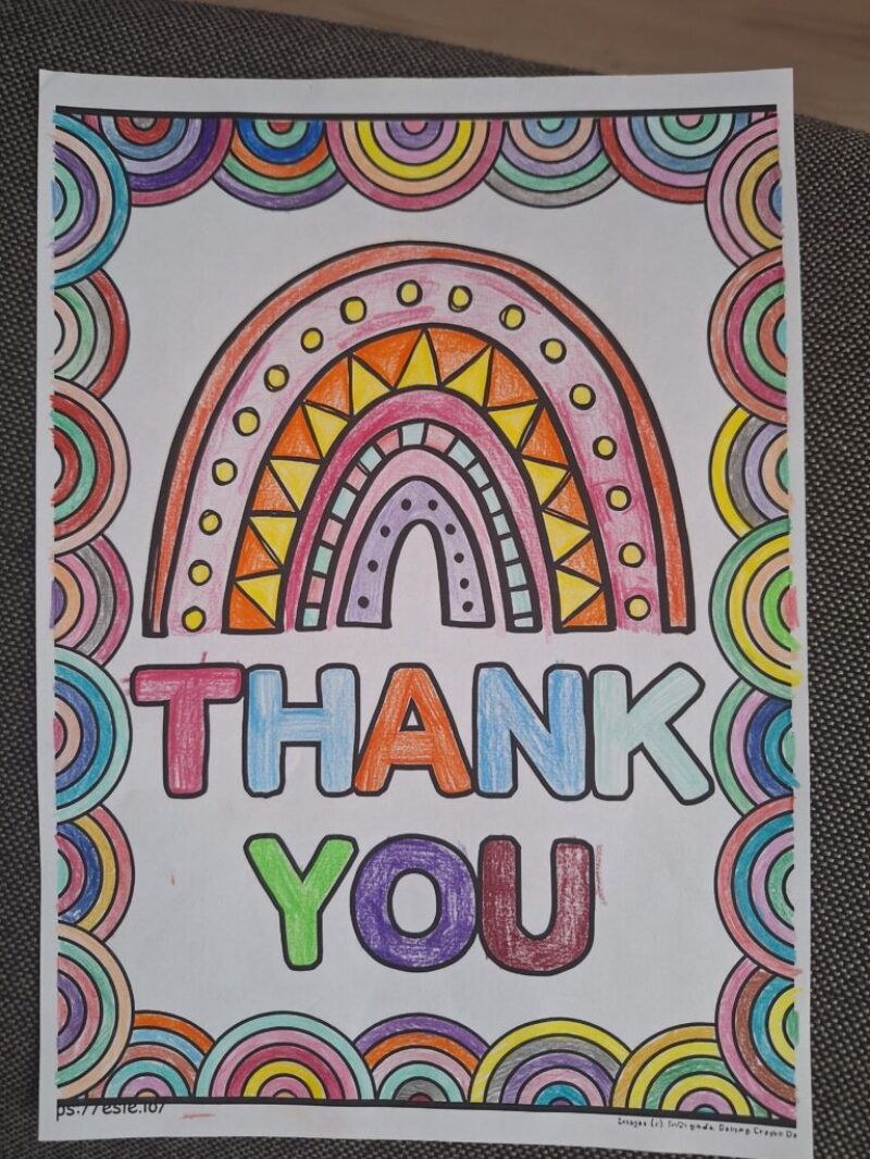 Beszélgettünk a boldogság fogalmáról, minden gyermek elmondhatta, számára mit jelent ez a szó, milyen érzéseket vált ki. Majd megkérdeztem mi is a hála? Miért is lehetünk hálásak?A fogalom megmagyarázásában nagy segítségemre volt a munkafüzet. Mivel a gyerekek szeretnek színezni, ezért készítettünk egy-egy plakátot, melyet mindenki annak a felnőttnek/szülőnek adhatott, akinek hálás volt valamiért.