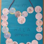 Az első boldogságóránk a hála gyakorlása volt. Az órát relaxációval indítottuk. Ezután közösen értelmeztük a hála fogamát, miért lehetünk hálásak, hogyan tudjuk kifejezni hálánkat mások felé. Körben ülve mindenki elmondta miért hálás most, majd egymásnak fogalmazták meg miért hálásak a másiknak. Megható volt hallani a gyerekek őszinte gondolatait. Elkészítettük az osztály HÁLA gyöngysorát. A gyöngyökre azt rajzolták le, amiért hálásak. Közben a háttérben szólt Bagdi Bella Szép nap, ölelj most át engem című dala, amely szeretettel és meghittséggel töltötte meg a termet.
