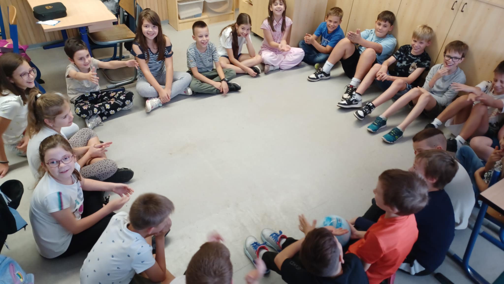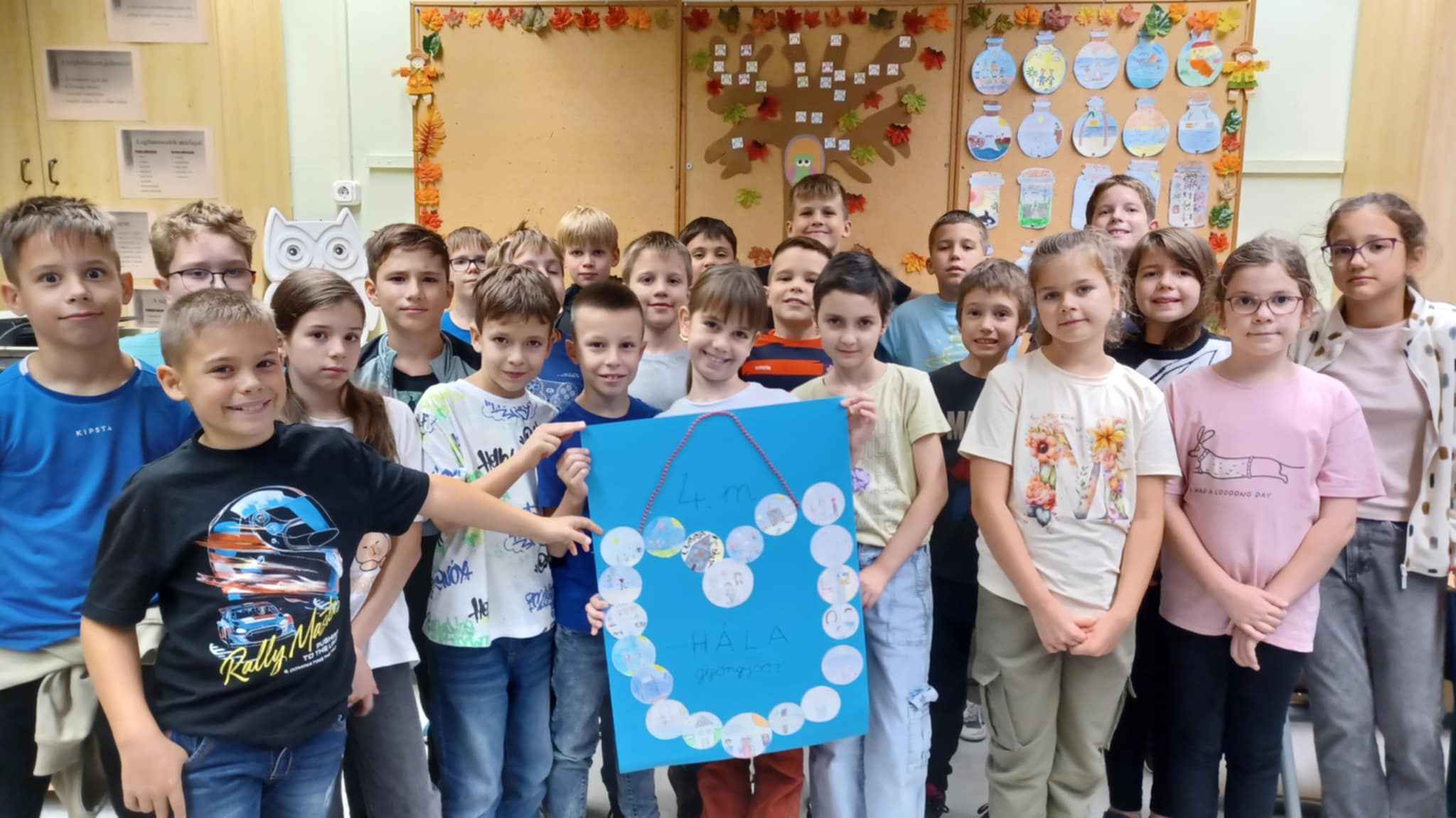 Az első boldogságóránk a hála gyakorlása volt. Az órát relaxációval indítottuk. Ezután közösen értelmeztük a hála fogamát, miért lehetünk hálásak, hogyan tudjuk kifejezni hálánkat mások felé. Körben ülve mindenki elmondta miért hálás most, majd egymásnak fogalmazták meg miért hálásak a másiknak. Megható volt hallani a gyerekek őszinte gondolatait. Elkészítettük az osztály HÁLA gyöngysorát. A gyöngyökre azt rajzolták le, amiért hálásak. Közben a háttérben szólt Bagdi Bella Szép nap, ölelj most át engem című dala, amely szeretettel és meghittséggel töltötte meg a termet.