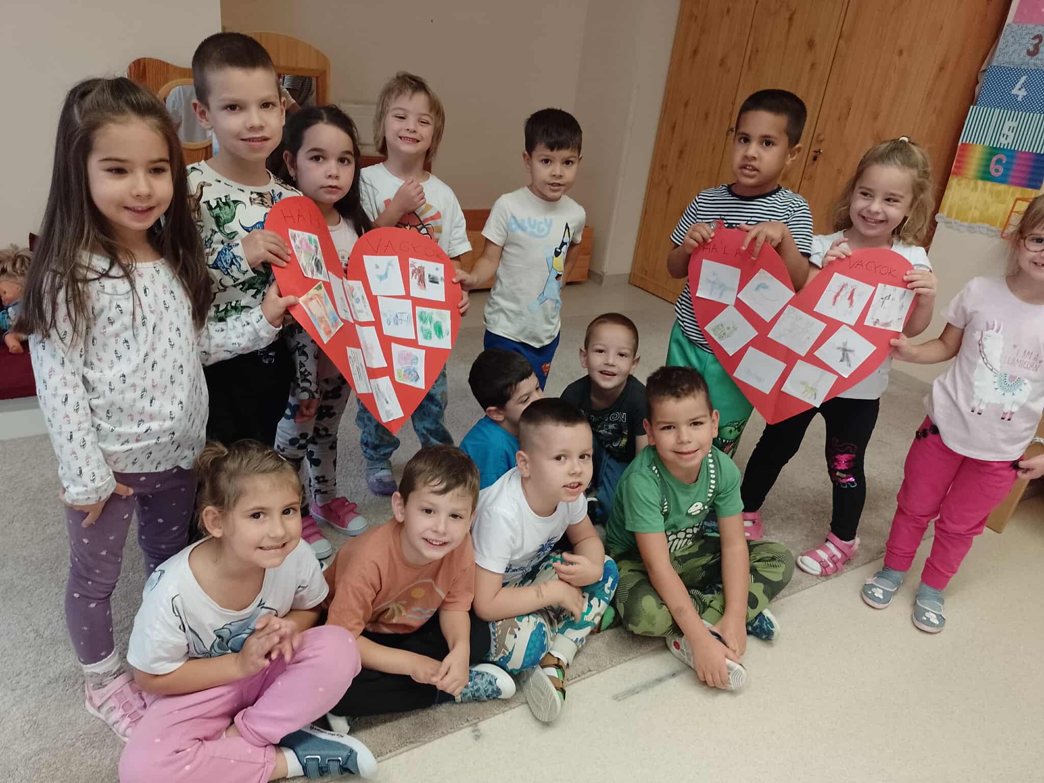 Célunk a 2025/2026-ös nevelési évre, az Örökös Boldog Óvoda programsorozat folytatása, a gyerekek mentális jólétének fejlesztése és pozitív szemléletének erősítése. A Derecskei Mese-Vár Óvoda, Csutkamanó csoportjának első boldogságóra foglalkozásának témája a hála gyakorlása. A gyermekek elsajátították a ,,Hála erősség mondókat” ezt követően kötetlen beszélgetés formájában megbeszéltük a hála fogalmát, értelmezését, magyarázatát. A téma bevezetése képpen közösen megnéztük ,,A hála virága az Erősségek kertjében” című videót, amely nagyon tetszett a gyermekeknek. Meghallgattuk a témához kapcsolódó ,,A hála erősségdalát”, majd hála alagúton áthaladva minden gyermek elmondhatta, hogy ő miért hálás. Ezt követően a gyermekeket egy hála kirándulásra vittük el, ami Kismarján, a Pajta kaland tanyán volt. A gyermekek az èlmènyszerzès mellett több állattal is találkozhattak s megfogalmazták, hogy miért hálásak. A hála kirándulás során számos új ismerettel és értékekkel ismerkedtek meg a gyermekek. Ez jó alkalom volt arra, hogy minél jobban erősödjön bennük a hála szó jelentésé. Ezután hála játékot játszottunk, ahol csukott szemmel kellett a saját tengelyük körül megfordulni, majd tapsra kinyitották a szemüket és a legközelebb álló társát ölelték meg. Közösen elmondtuk Aranyosi Ervin: Ölelés című versét. A boldogság és hála érzetét igyekeztünk Bagdi Bella: Hálás vagyok című dalával még jobban erősíteni. Körbe ülve, átkarolva egymást a gyerekek kérésére, többször is meghallgatták. Szem előtt tartva a csoport és egyes gyerekek fejlettségi szintjét, úgy érzem, hogy az első boldogságóra foglalkozásunk sikeres volt, S mindannyian nagyon várjuk a következő különleges alkalmat.