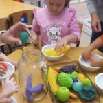 A Hála mese meghallgatása különösen sikeres volt. A kicsi kosár története egyszerű, de mégis gazdag képekkel segítette a kicsiket abban, hogy felismerjék: az apró dolgokért is lehetünk hálásak. A bábok és a dramatikus elemek lekötötték a figyelmüket, sokan aktívan reagáltak a gyümölcsök megszólalásaira, és örömmel ismételték a „Hálás vagyok” kifejezést.