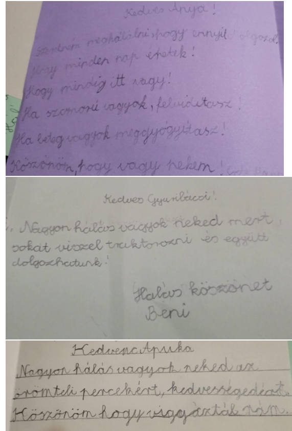 A meséhez hasonlóan minden tanuló keresett egy személyt, akinek hálalevelet írt. Nagyon változatosan fogalmazták meg érzéseiket. Kedves alkotások születtek, amelyet később fognak átadni a címzetteknek.