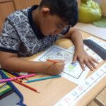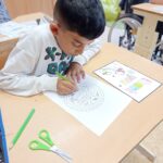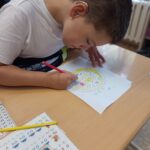 A tanóra végén zenehallgatás mellett minden gyermek színezhetett hálából egy-egy képet az általa kiválasztott családtagnak, felnőttnek.