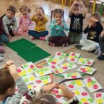 – Add tovább a falevelet játék játszása a szőnyegen. Egymásra figyelés gyakorlása.