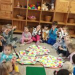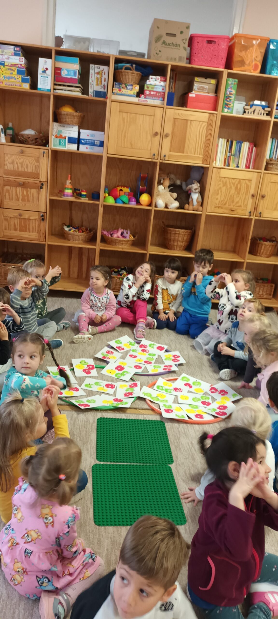 – Add tovább a falevelet játék játszása a szőnyegen. Egymásra figyelés gyakorlása.
