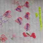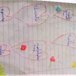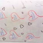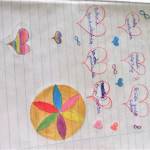 A vélemények meghallgatása után minden tanuló a saját osztályfőnöki füzetükbe rajzolt 6db szívet. Minden szívbe egy-egy szó/gondolat került, amiért a tanuló hálát érez. Akinek volt kedve felolvashatta ezeket a szavakat, gondolatokat. Nagy öröm volt számomra, hogy több füzetben is megjelent az osztályfőnöki óra. Végül én is elmeséltem a gyerekeknek, hogy én miért vagyok hálás az életemben.