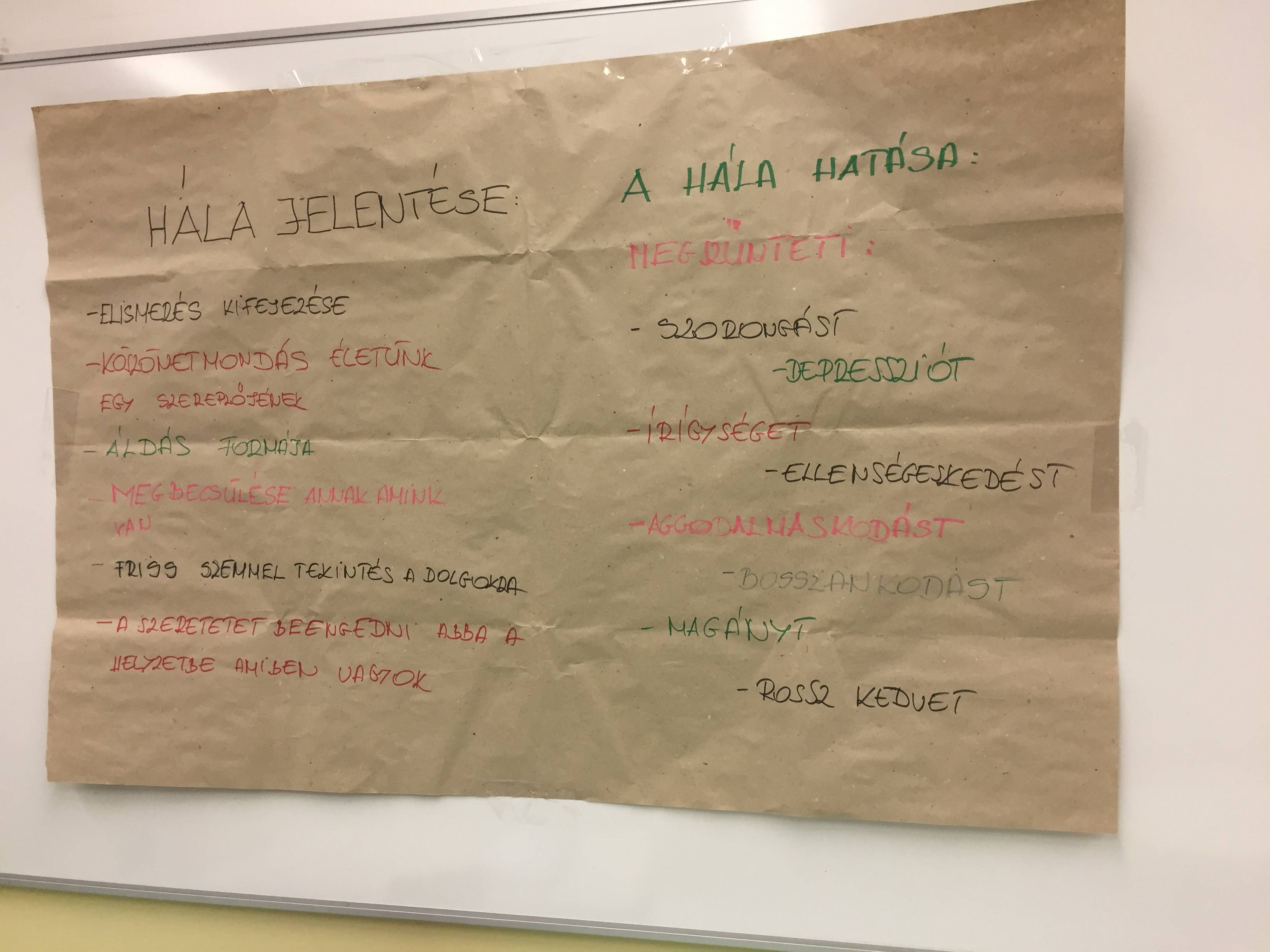 Hála levél írása, a tanulók számára fontos embereknek(család, rokon, barát)