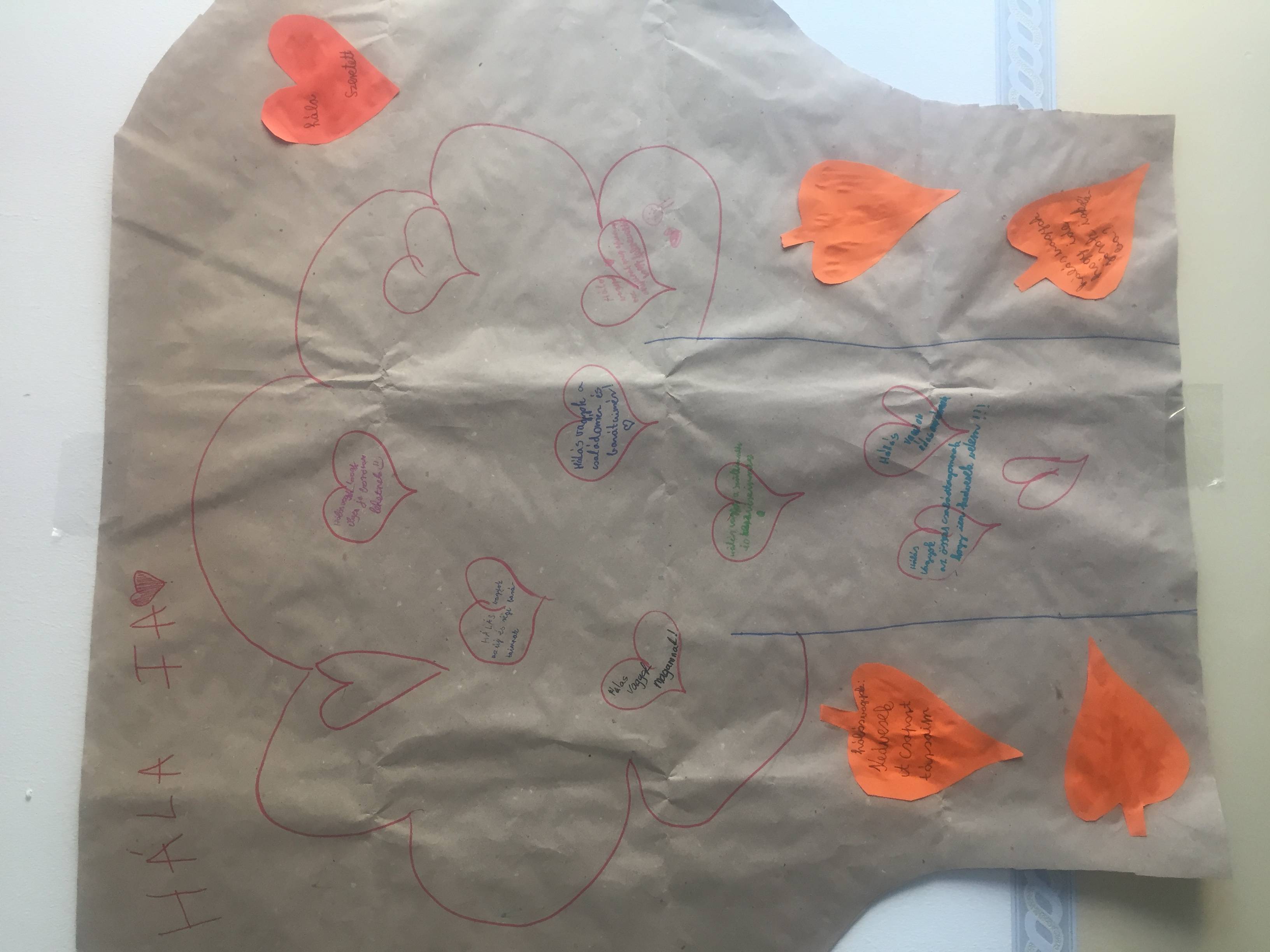 Hálaüzenetek elhelyezése, melyek a családdal, társakkal, életükkel kapcsolatosak