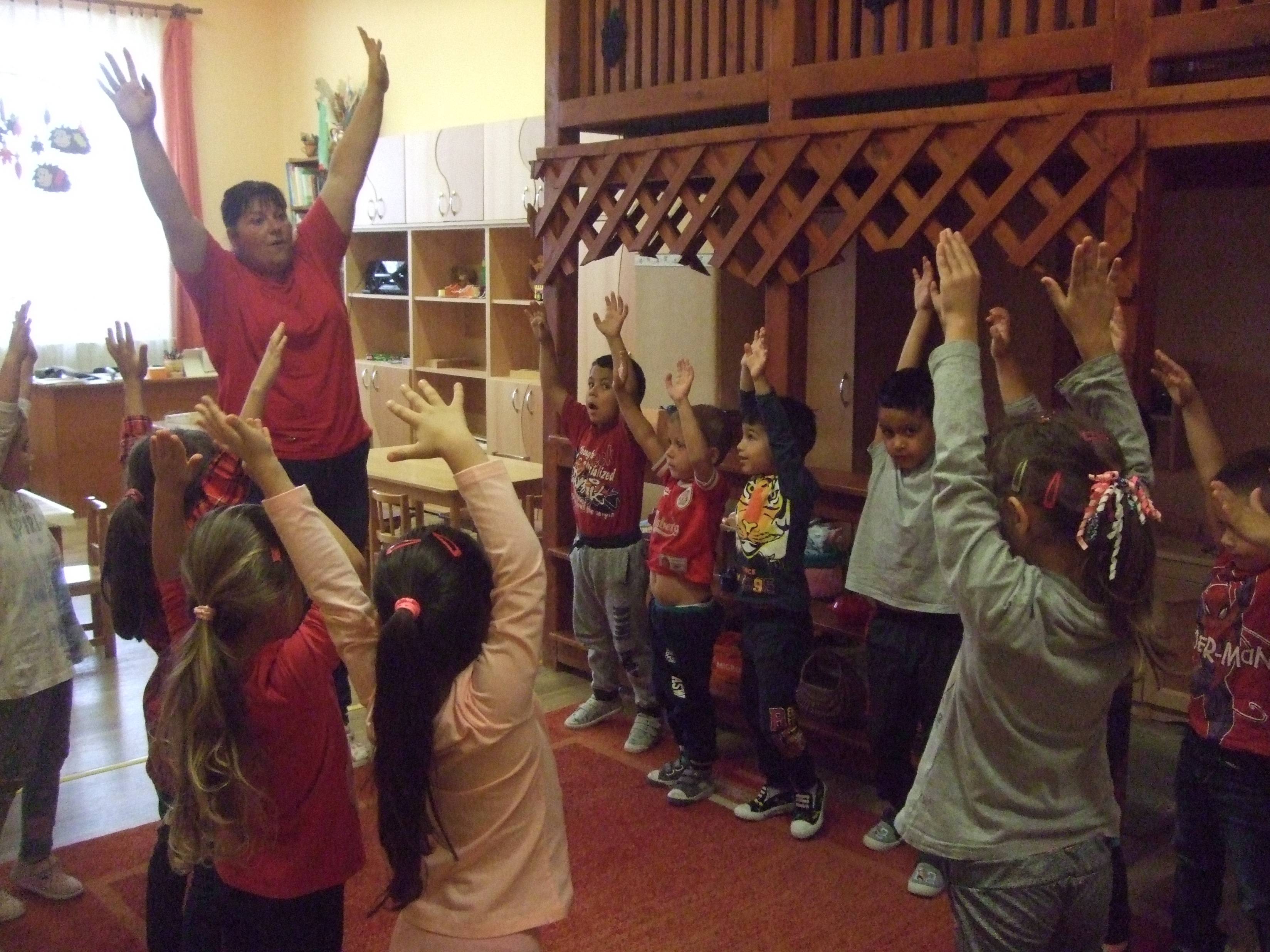 Relaxációs gyakorlat végzése a gyerekekkel: „Óriási fa vagyok…”, majd a hónap dalának meghallgatása, Bagdi Bella: Szép nap…